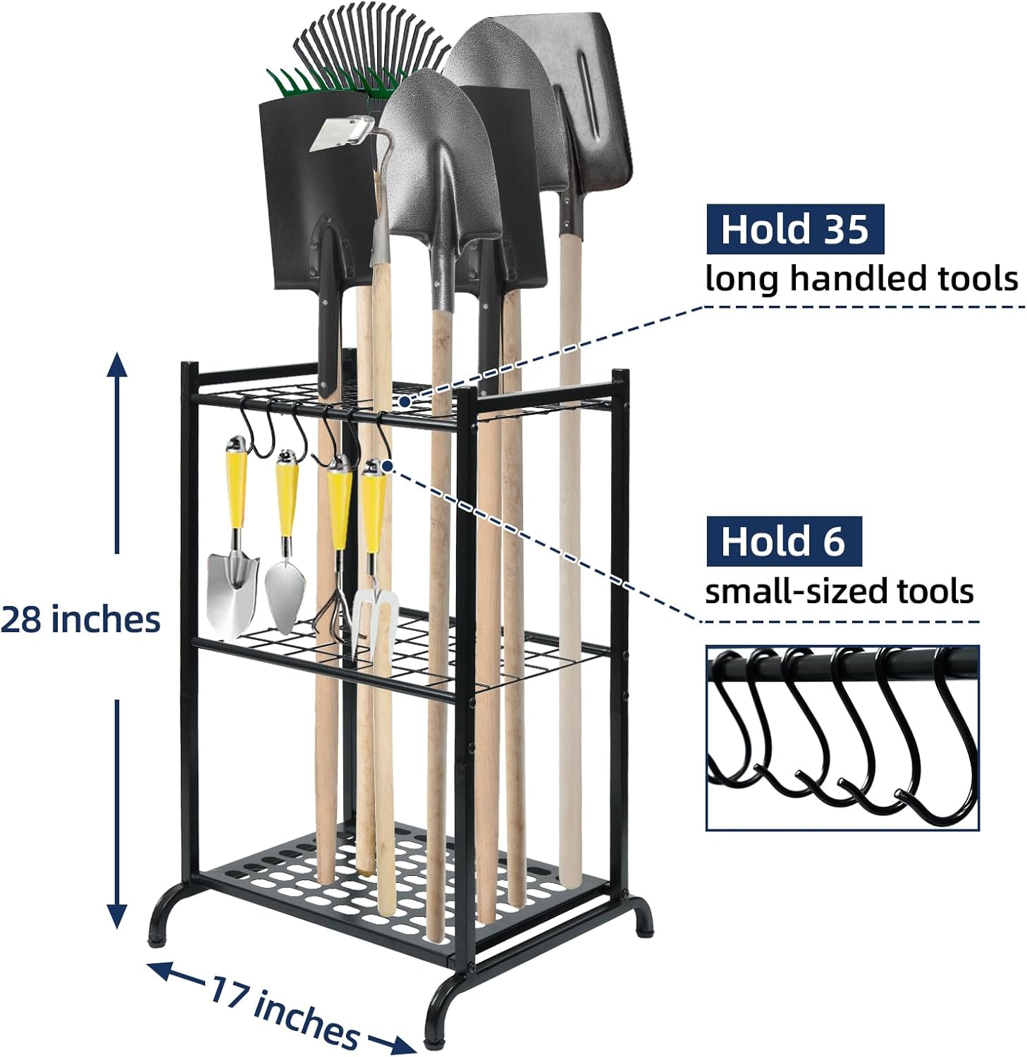 - STURDY&DURABLE GARDEN TOOL ORGANIZER - If the garden tool organizer you received is thin and unstable, what bad it is. Our garden tool organizer is made of premium heavy duty metal with thick coatings, rust-resistant & corrosion-resistant, and sturdy enough to store your yard tools without worrying that the yard tool organizer will collapse.
