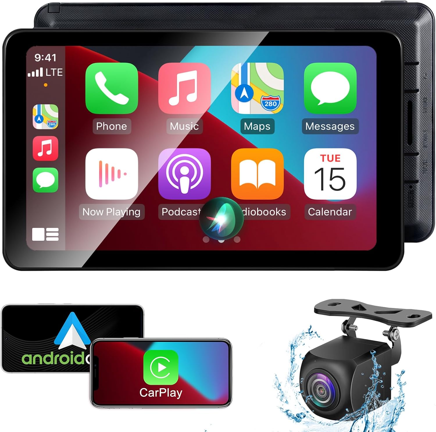 Compatible Wireless Apple CarPlay Android Auto Screen fo Car, 7" HD Backup Camera Portable Stereo Bluetooth Touch Screen, GPS Navigation, Mirror Link, Siri, AirPlay, FM, AUX
