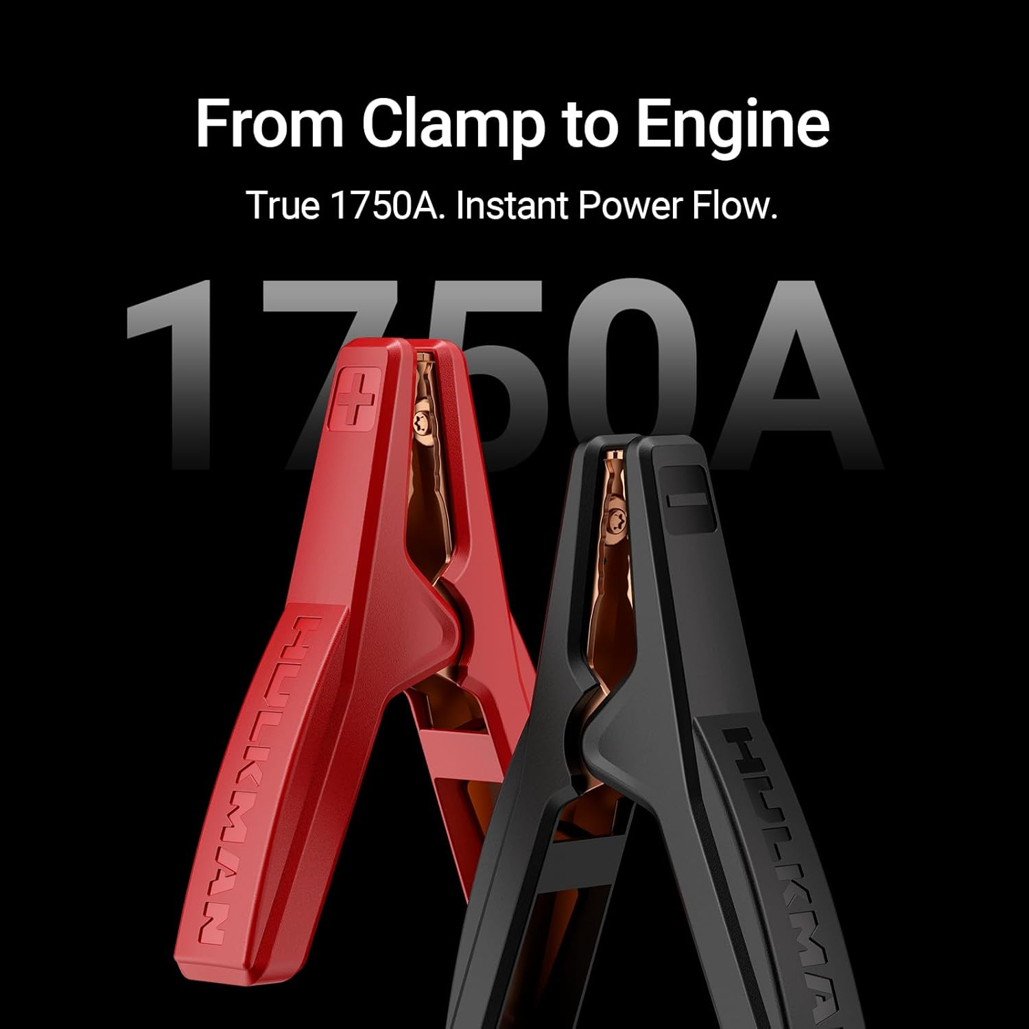 - [Start Dead Batteries] Delivers true 1750A peak current from the clamps—enough to jump start 8.0L Gas/5.0L Diesel engines.
