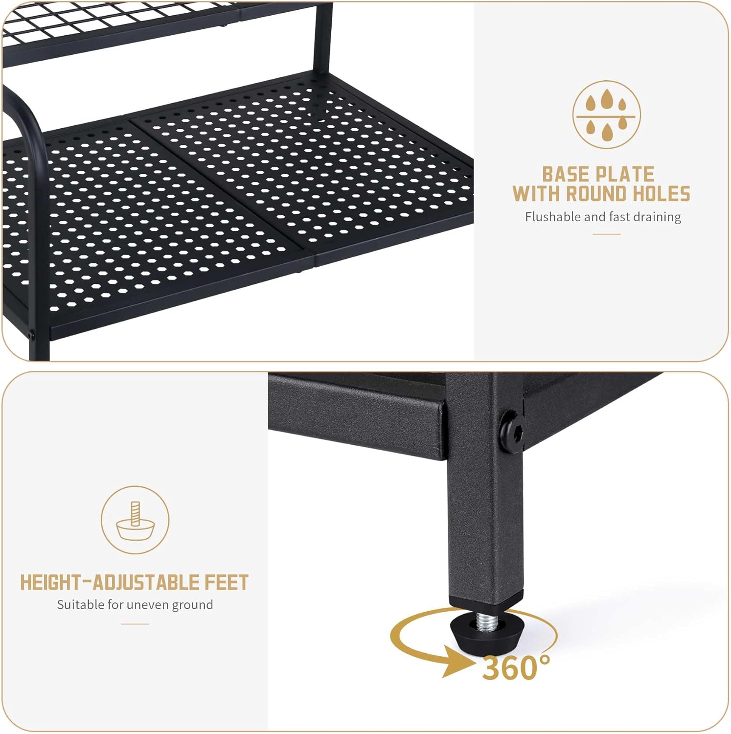 - [Sturdy & Durable] This garden tool storage rack is made of metal with a black powder coating, making it waterproof and rustproof, suitable for both indoor and outdoor use. Also, the garden tool holder comes with 4 adjustable feet to keep it stable even on uneven ground.