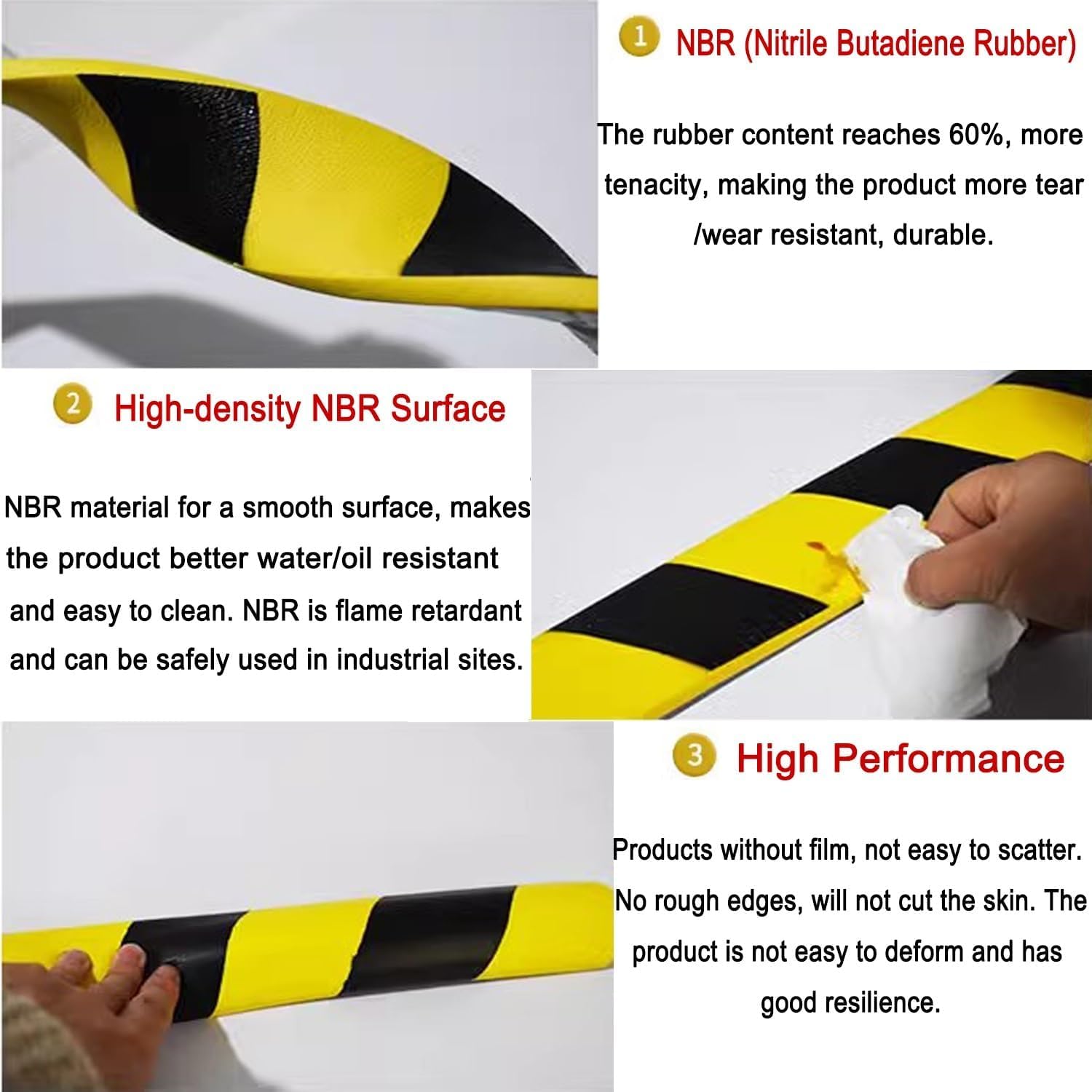 - 【Durable NBR Rubber Material】:Crafted from high-quality Nitrile Butadiene Rubber (NBR) with up to 60% rubber content, this corner guard offers superior flexibility, impact absorption, and long-lasting performance.