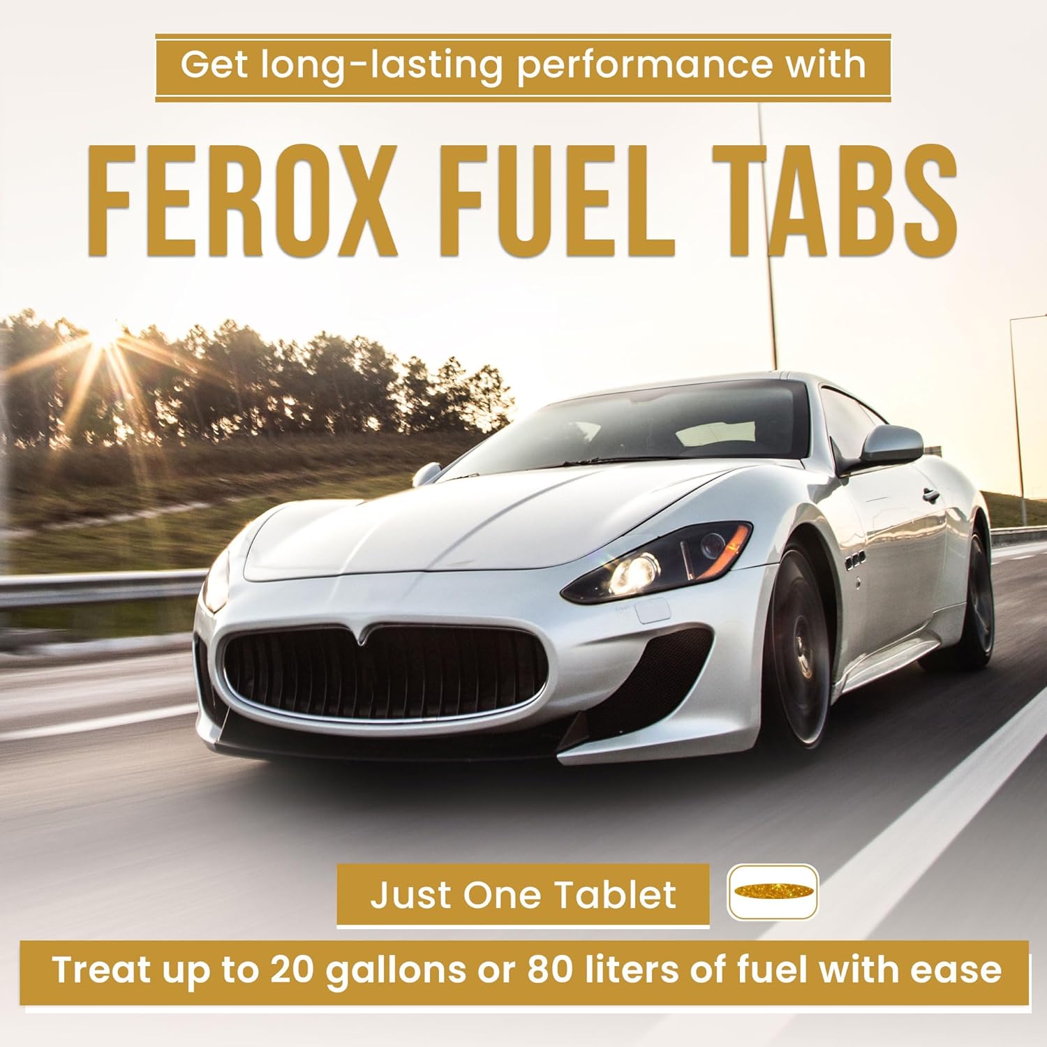 - SAFE, DRY, & PLASTIC FREE: Unlike traditional liquid additives, Ferox tabs are solid non-toxic, nonflammable, and bottle free. This makes our product easy to store, safe to handle, and eliminates 99.99% of plastic bottles used for traditional additives.