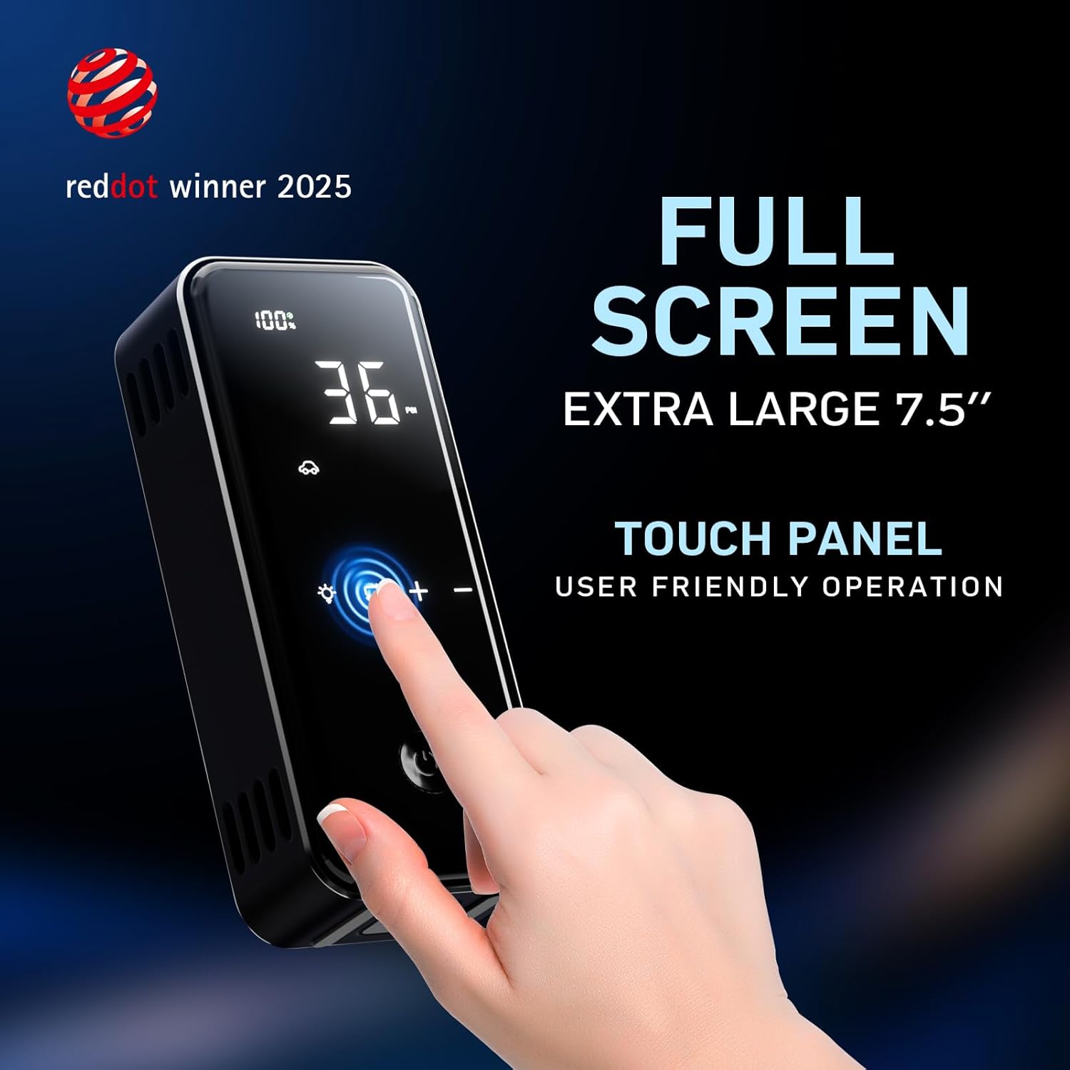 - Full Screen Touch Panel: The sleek, full-screen touch interface ensures easy operation, even in low-light conditions. Its stylish design and intuitive controls make this portable tire inflator a perfect addition to your car emergency kit.Powerful 65W PD&QC 3.0 output inflator boasts 5 times faster charge speed than portable tire inflators and 4 times faster than average portable chargers.