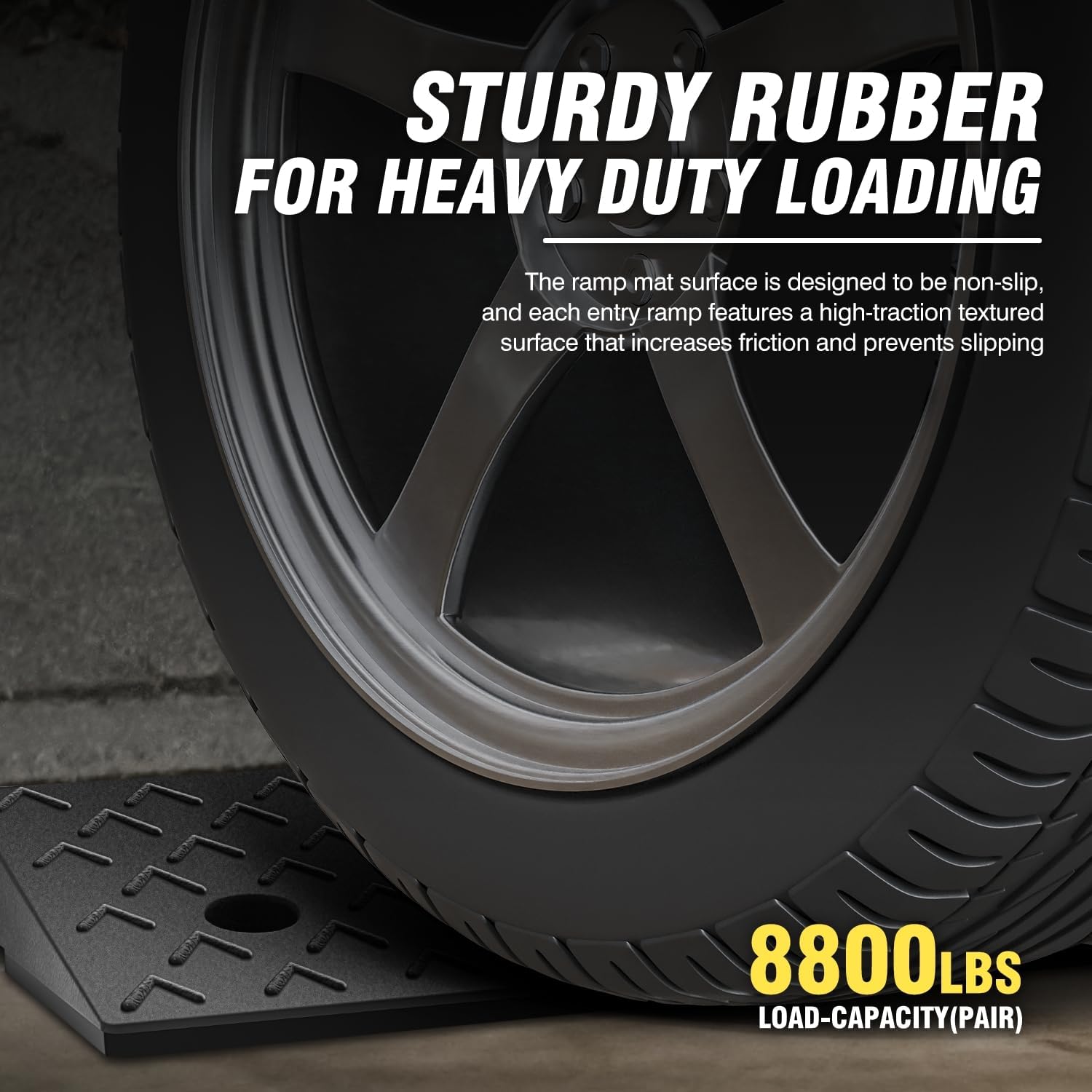 - WIDELY USED - From small to medium-sized vehicles to toy cars, It can greatly protect the safety of going up and down stairs, and are also a good choice for mobility issues; Widely used in households, warehouses, garages, etc; If you are concerned about the smell of rubber, we suggest that you can leave the wheelchair ramp outdoors for more than 1 days for ventilation.