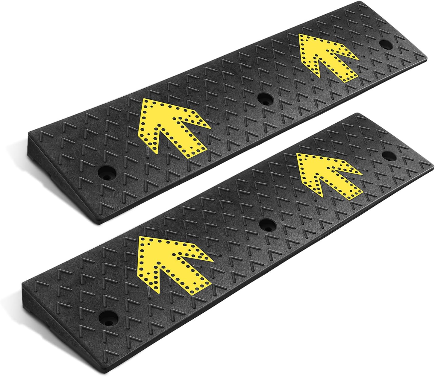 DNA MOTORING 2pcs 2.2" Rise Rubber Arrow Curb Ramp Heavy Duty Loading Driveway Ramps Threshold Ramp 37.2in L x 9.1in W x 2.2in H for Loading Dock, Warehouse, Wheelchair, Motorcycles, Cars, TOOLS-00648