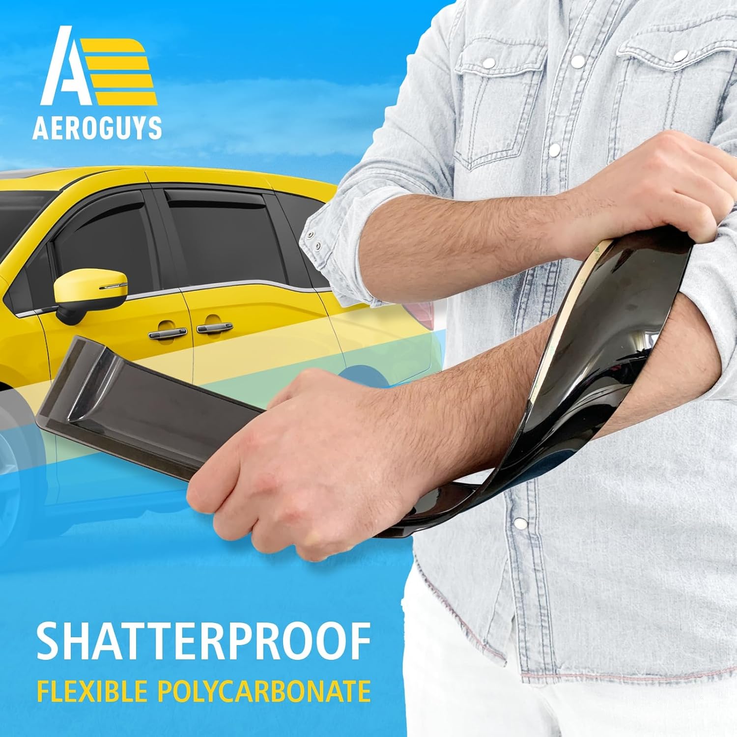 - Incredibly Durable AEROGUYS Auto Window Deflectors – They are made with strong and tough polycarbonate which is clear and scratch-resistant. They also provide UV protection making your ride more comfortable under all weather conditions.