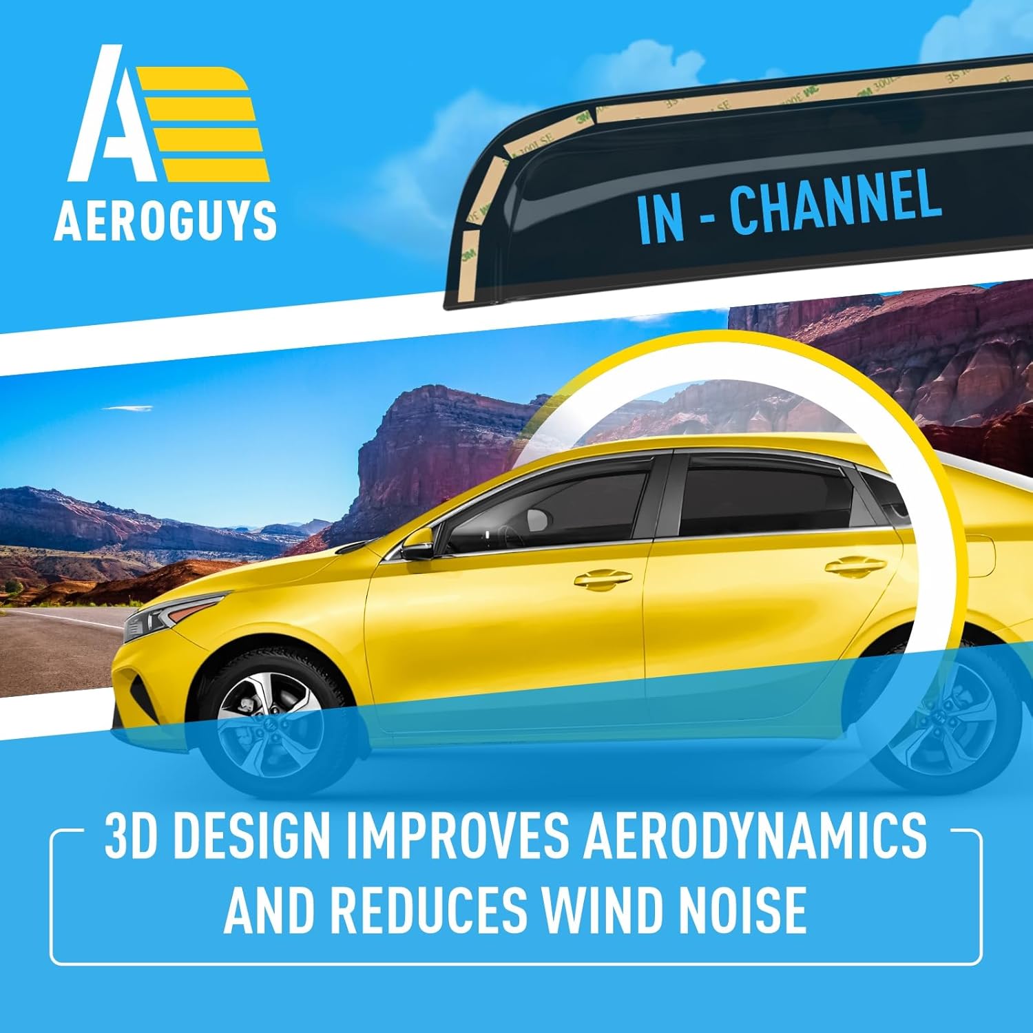 - No Tools Needed, Quick and Easy Assembly – These rain guards are very easy to fit. IN-CHANNEL INSTALLATION provides perfect fit for your car. Just slip it onto your car’s window and your job is done within minutes. There is no drilling or no tools required. Be sure that AEROGUYS window deflectors are water resistant, sun protective and will not bend, break or crack regardless of the weather conditions.