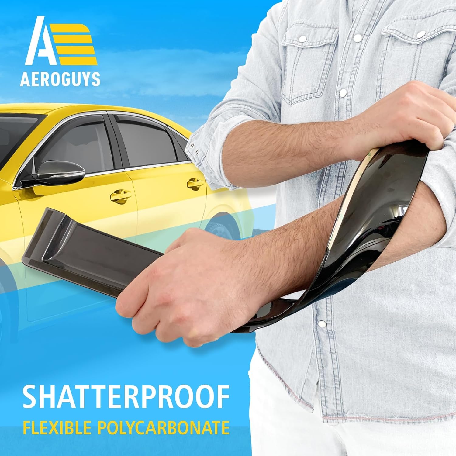 - Incredibly Durable AEROGUYS Auto Window Deflectors – They are made with strong and tough polycarbonate which is clear and scratch-resistant. They also provide UV protection making your ride more comfortable under all weather conditions.