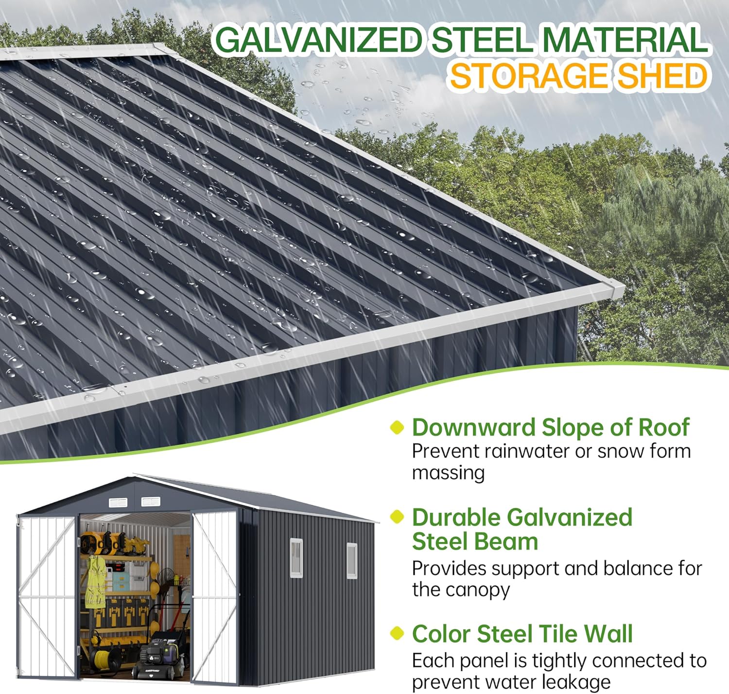 - Durable Construction: Crafted from galvanized steel, this shed is rust-resistant and weatherproof, ensuring long-lasting durability even in tough outdoor conditions.