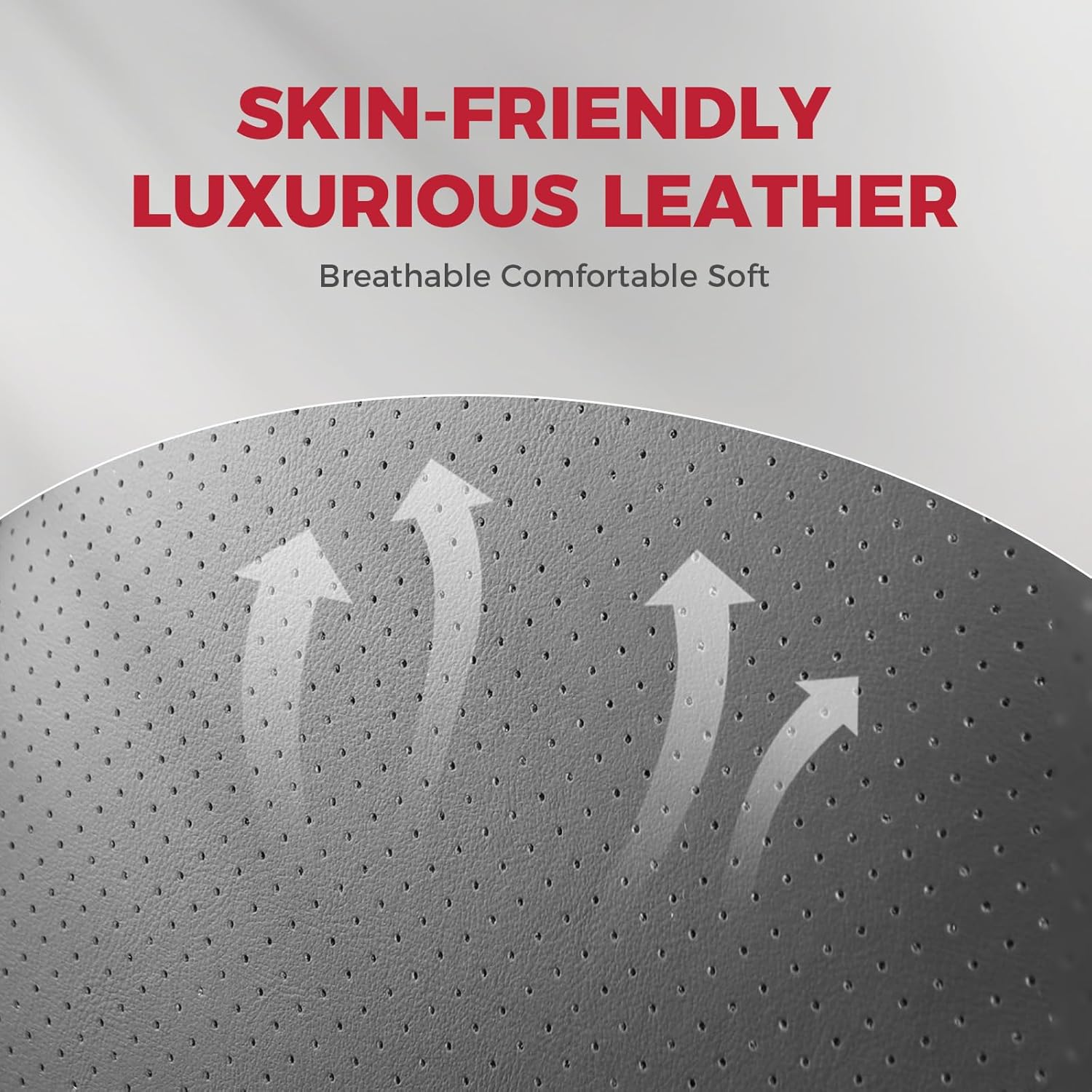 - [Premium Faux Leather] Made of high-grade perforated faux leather, these covers are breathable waterproof, easy to clean, and a luxurious. Whether you frequently engage in outdoor activities, travel with kids, or have pets, maintaining the elegance and sophistication of your car interior is effortless