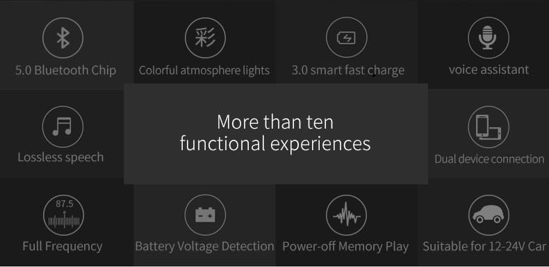 - Special Feature : 1. Bluetooth version Bluetooth V5.0, 2. Support the key to wake up the phone voice assistant, 3. Support music, volume, frequency power memory function, 4. Support Bluetooth automatic callback 1. Bluetooth version Bluetooth V5.0, 2. Support the key to wake up the phone voice assistant, 3. Support music, volume, frequency power memory function, 4. Support Bluetooth automatic callback