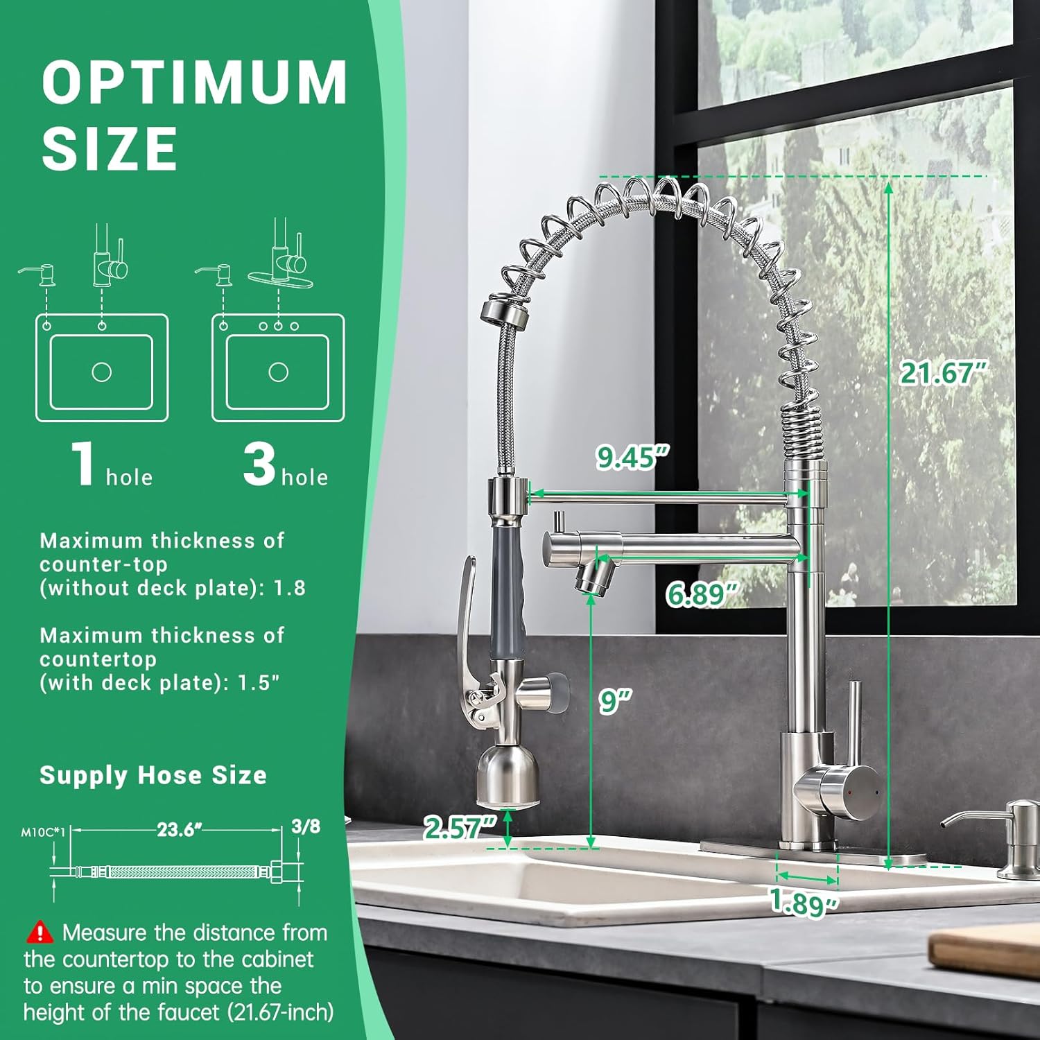 - ENJOY GREAT FUNCTIONALITY: With a one-function kitchen faucet sprayer and a separate pot filler spout, this pull down faucet allows you to handle all types of tasks. The spray head and stream spout can swivel around 360 degrees for full sink access, and the pre-rinse faucet ensures high pressure while still saving on water.