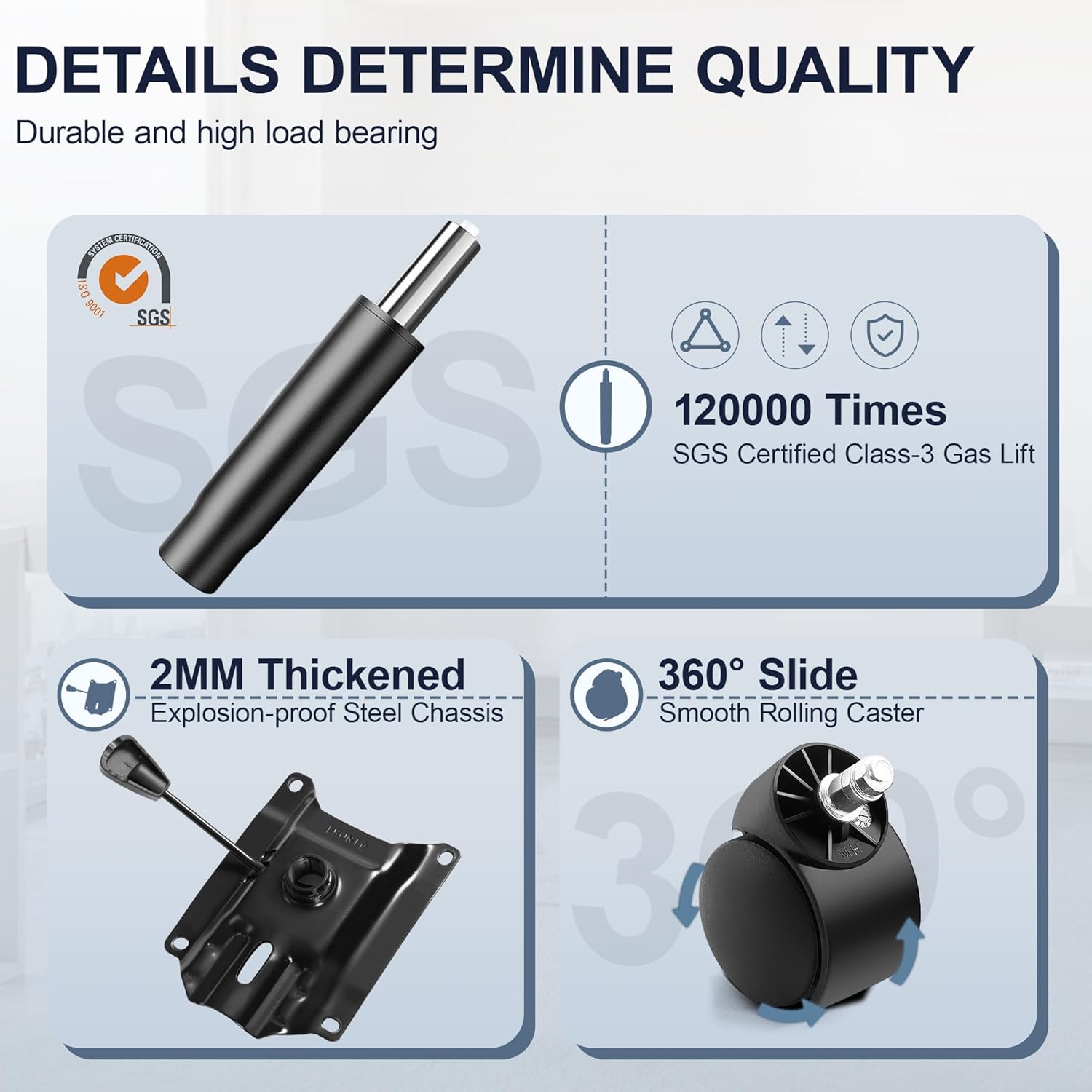 - Adjustable Height and Footrest Ring: The height of the rolling chair can be adjusted from 33.86 inches to 41.75 inches, making it suitable for users of varying heights. The footrest ring of the standing desk chair can be adjusted up and down by 7.87 inches, allowing you to find a comfortable angle for your legs