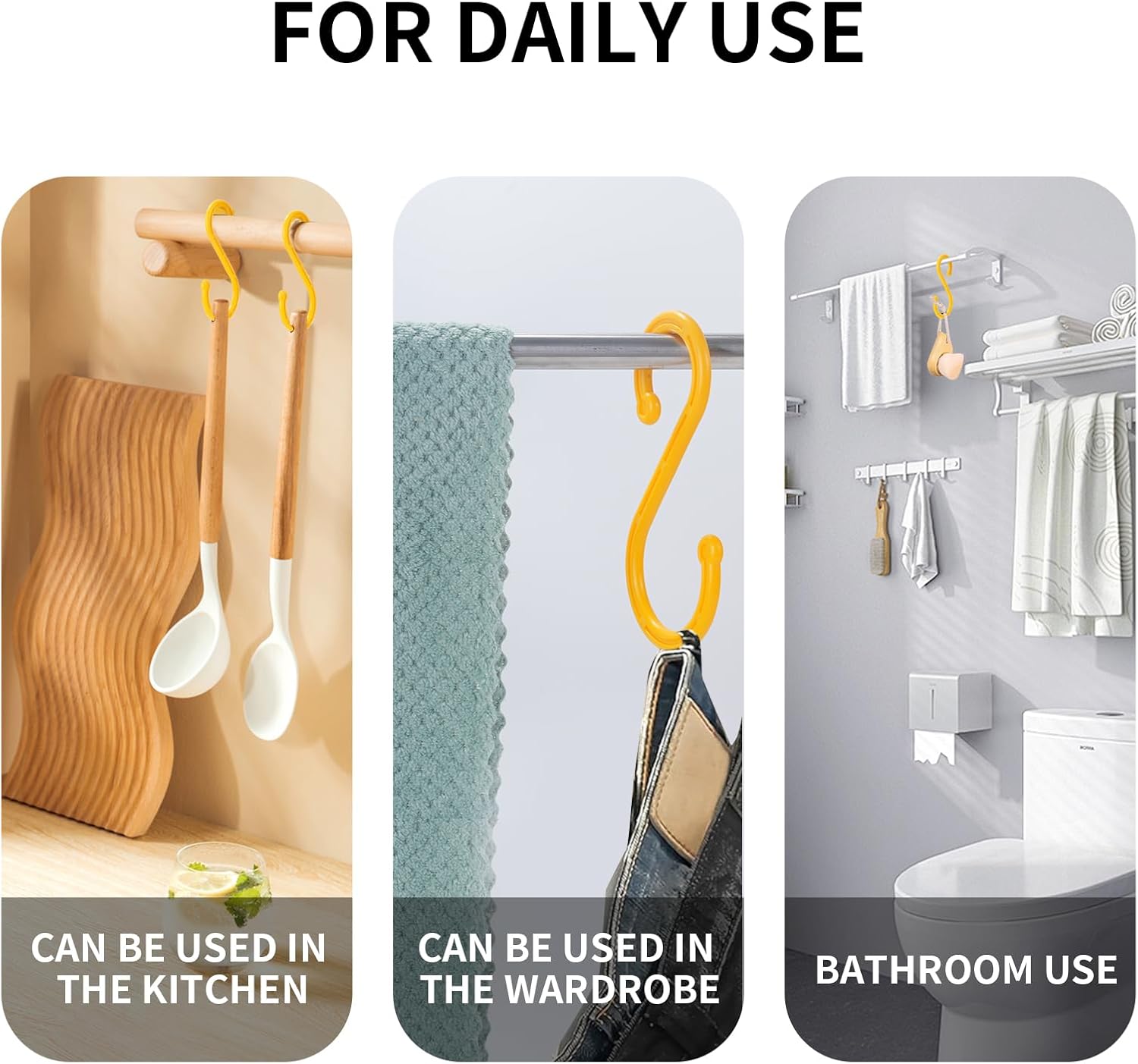 - 【Daily Use】For daily use, these large s hooks can be conveniently used in the bathroom to hang towels or bathrobes, in the closet to hang clothes or accessories, and even in the kitchen to hang dishes or pots and pans. These plant hooks are brightly colored and provide a practical storage solution while adding a sense of style.