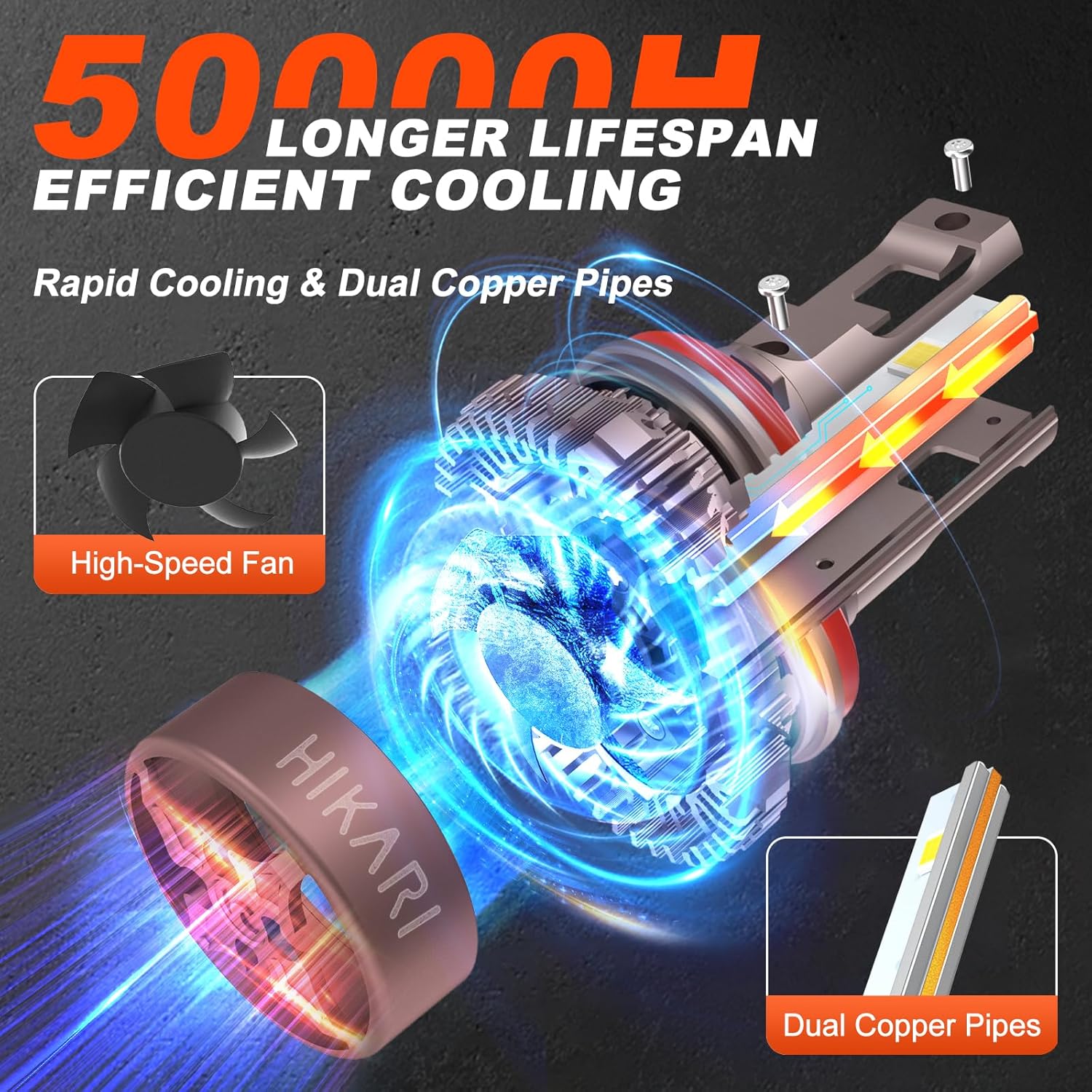 - 【Enhanced Lifespan & Efficient Cooling】: Our lights feature a dual copper tube design, aerospace aluminum construction, and a high-speed fan operating at 15,000 RPM. This reduces surface temperature by 20% to 30%, ensuring stable thermal performance. With an extended lifespan of over 50,000 hours, our lights guarantee reliable operation even in demanding conditions.