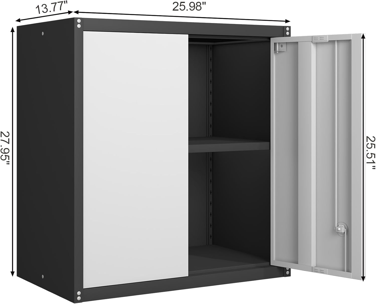 GREATMEET Metal Wall Cabinet, Wall Mounted Garage Cabinet, Locking Metal Storage Cabinet with Doors for Home Office, Garage, Utility Room