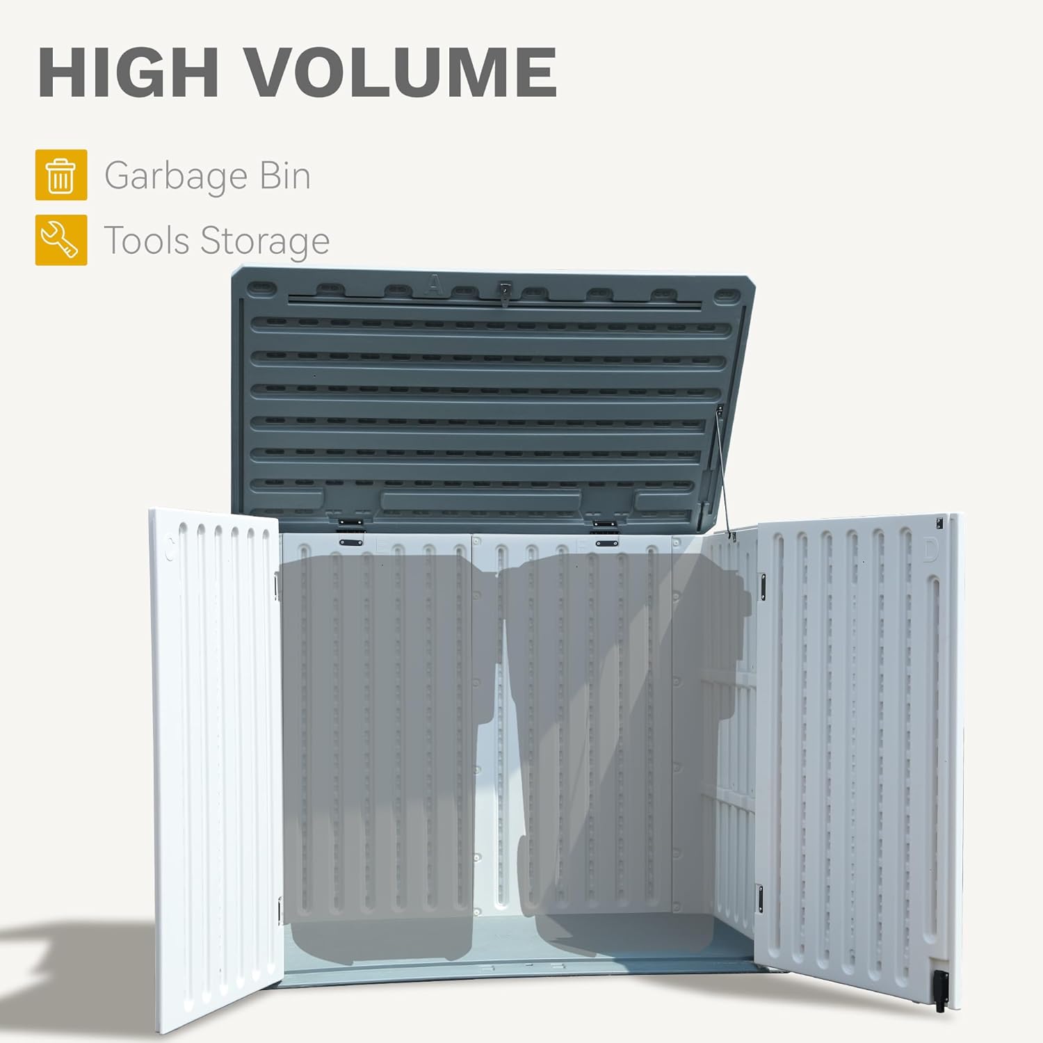 DWVO Outdoor Weather-Resistant Horizontal Storage Shed, 35 Cu Ft Capacity, Lockable and Waterproof, Suitable for Storing Garden Tools, Light Gray