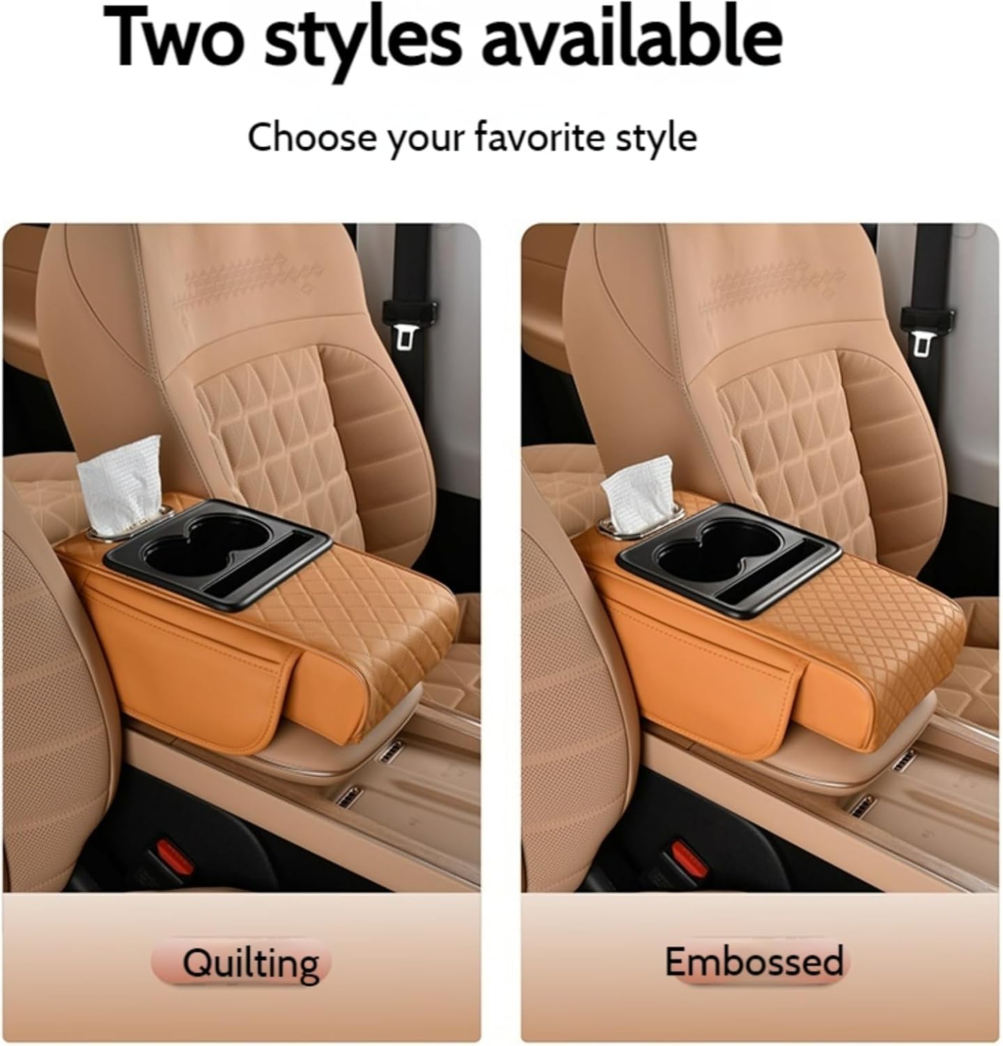 - 【Storage Upgrade】Our armrest cover doubles as an organizer, Equipped with built-in cup holders, a tissue box, and side pockets, this car console cover allows for organized and efficient space use. Keep your essentials within arm’s reach and your car interior clutter-free