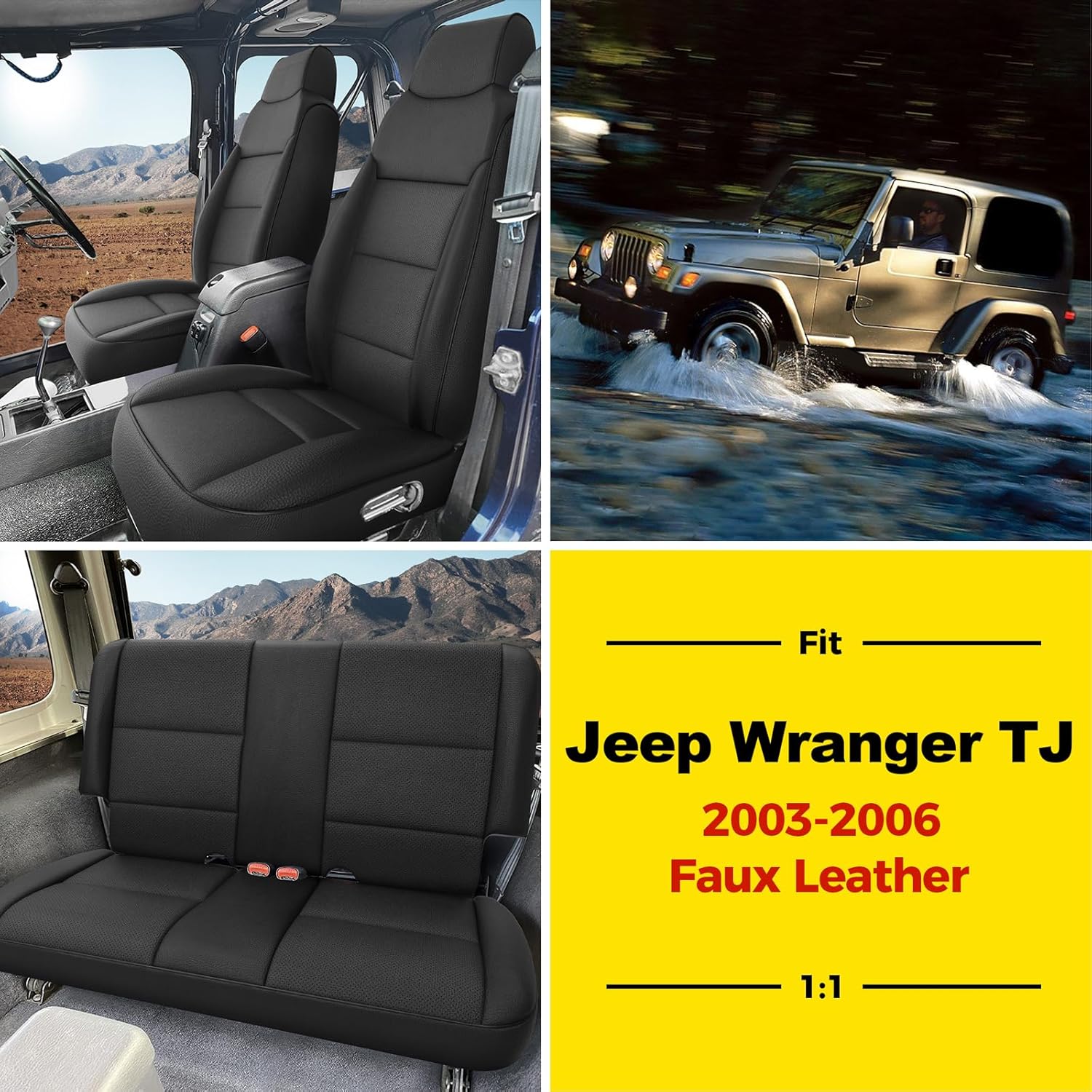 - ăCUSTOM FITă - A full set of seat covers customized according to the original car seat size 1:1, which will fit Jeep Wrangler TJ Rubicon Sahara Sport X Unlimited 2003 2004 2005 2006 like a glove.
