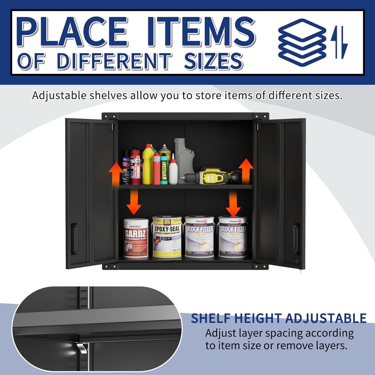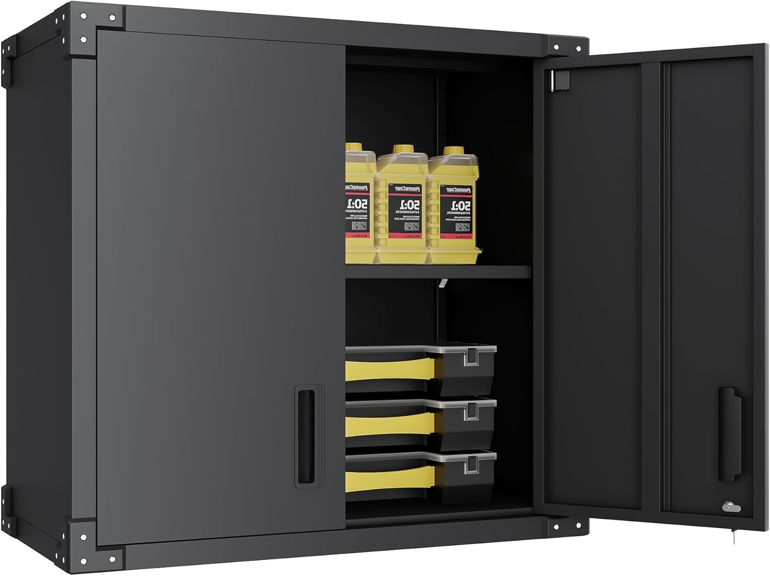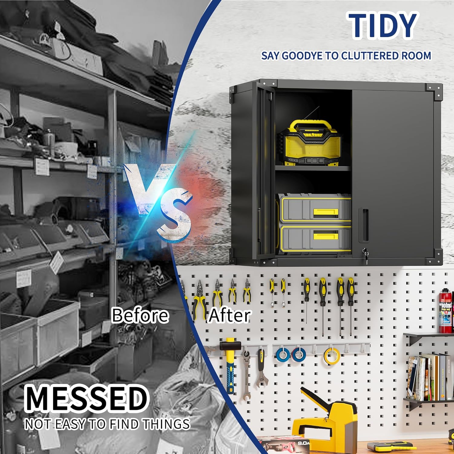 - Multi-scene Use: Wall cabinet is suitable for home, garage, warehouse, kitchen, tool room, especially for garage and tool room, for you to place tools and daily necessities to provide sufficient safe storage space, keep the room clean.