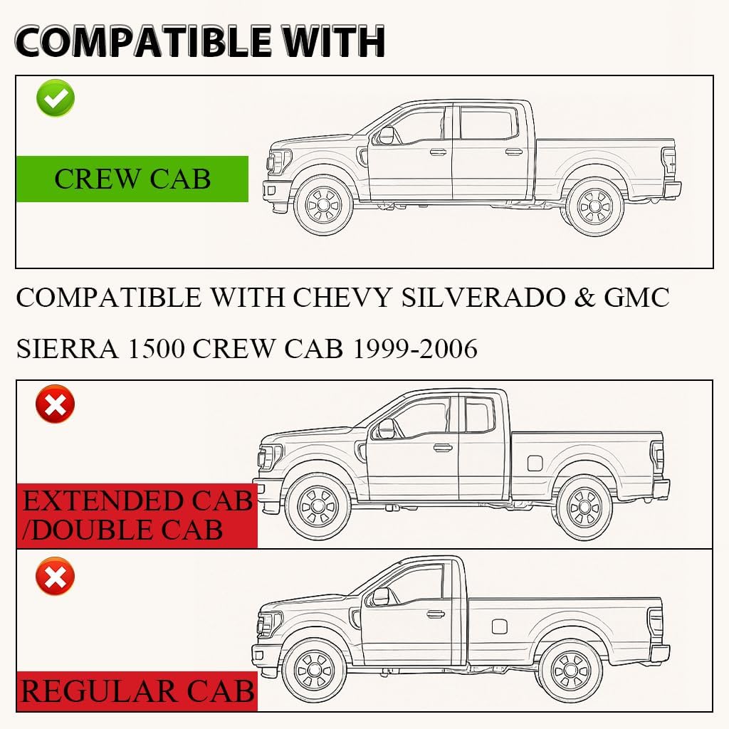 - Compatibility:Compatible with Chevy Silverado GMC Sierra 1500 Crew Cab 1999-2006