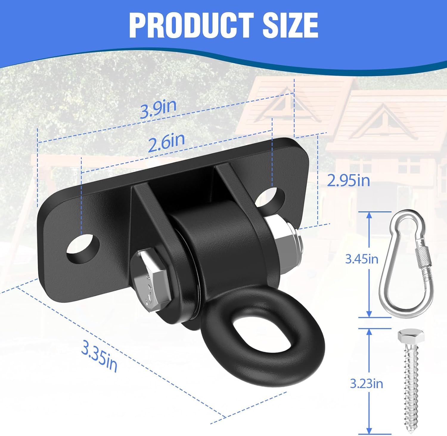 - Outdoor and Indoor: This isn't just for swingset! Also perfect for all kinds of hanging hardware products indoors & outdoors, including gymnastics rings ceiling mounts, porch swings, yoga swings, hammocks, punching bags etc