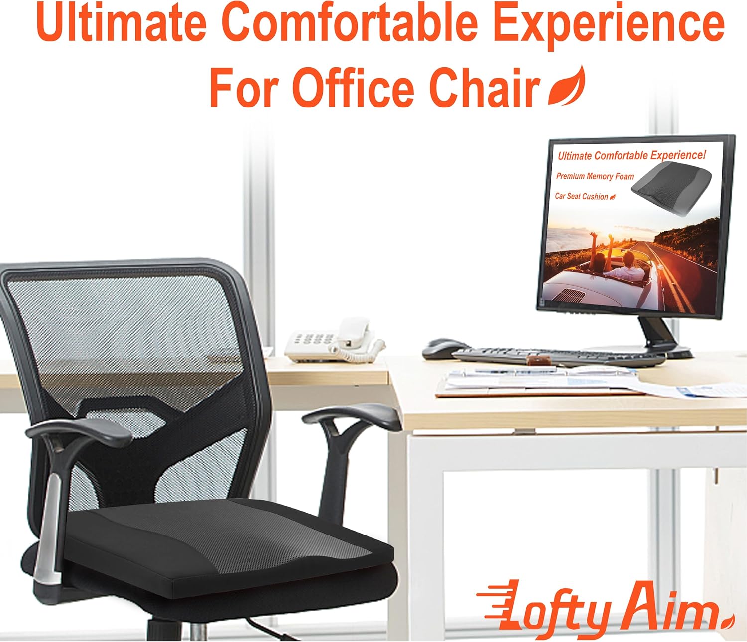 - MEMORY FOAM CAR SEAT CUSHION — The high density memory foam encourages support to the tail area and can relieve the pain of sciatica and in the lower back area