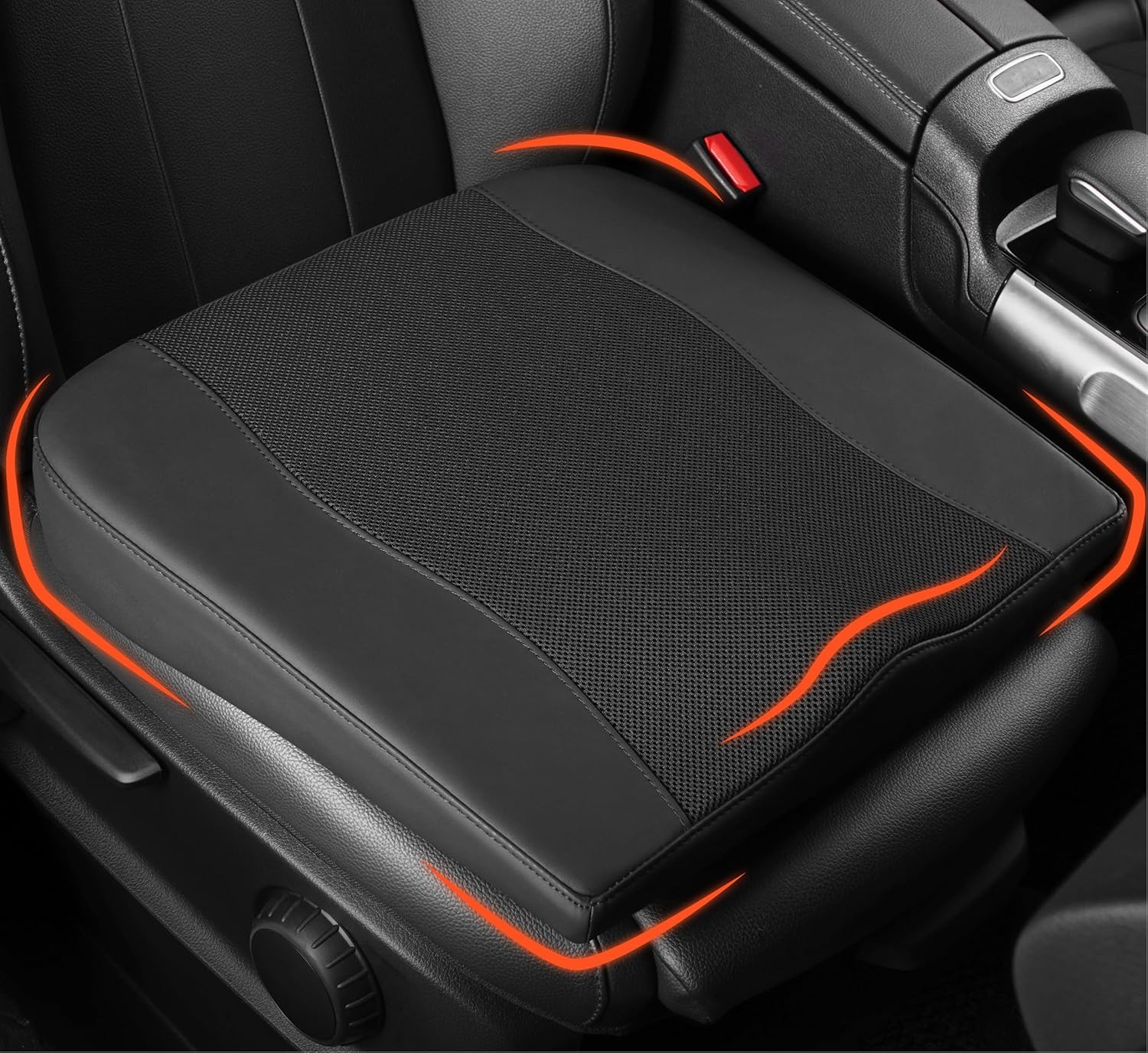 - ADDS HEIGHT BY 2.5 INCHES — Allows for increased vision of the front of your car and the road thanks to the car cushions for driving providing an additional 2.5” in height. Non-slip base keeps the car cushion firmly in place