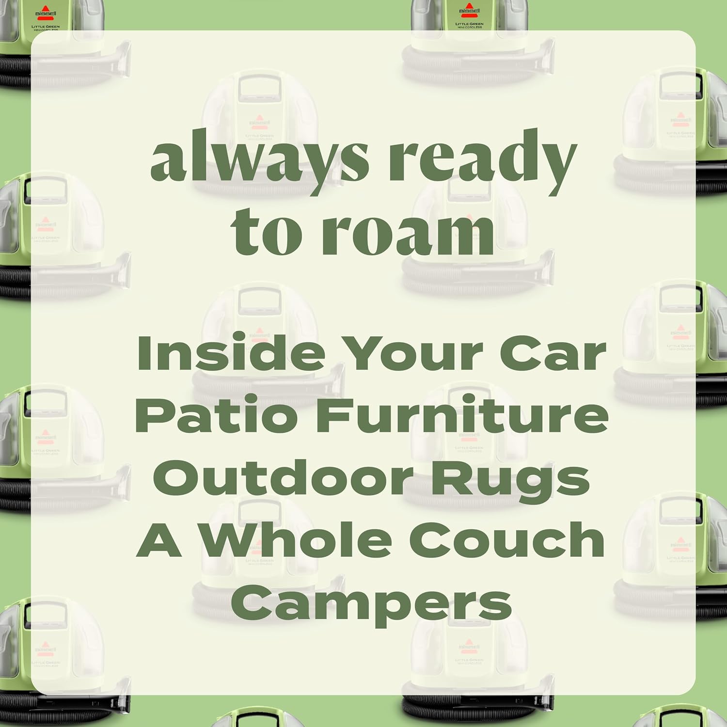 - INCLUDES: 4” Tough Stain Tool with Removable Lens, HydroRinse Self-Cleaning Hose Tool, and 8 oz. BISSELL Little Green Formula