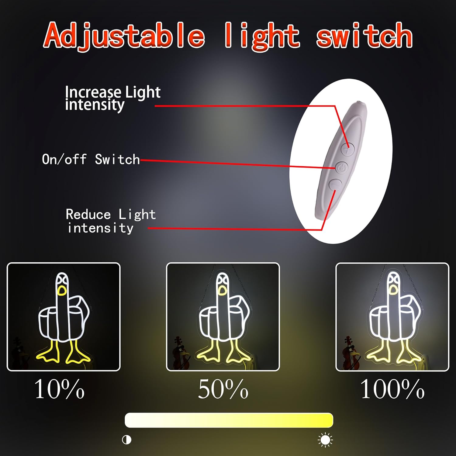 Funny Duck Neon Sign,Cool LED Neon Light Sign for Wall Decor, Aesthetic Cartoon Neon Signs for Bedroom, Game Room, Bar, Man Cave, Studio, Trendy Duck Wall Art with Hand Gesture and Yellow Duck Feet