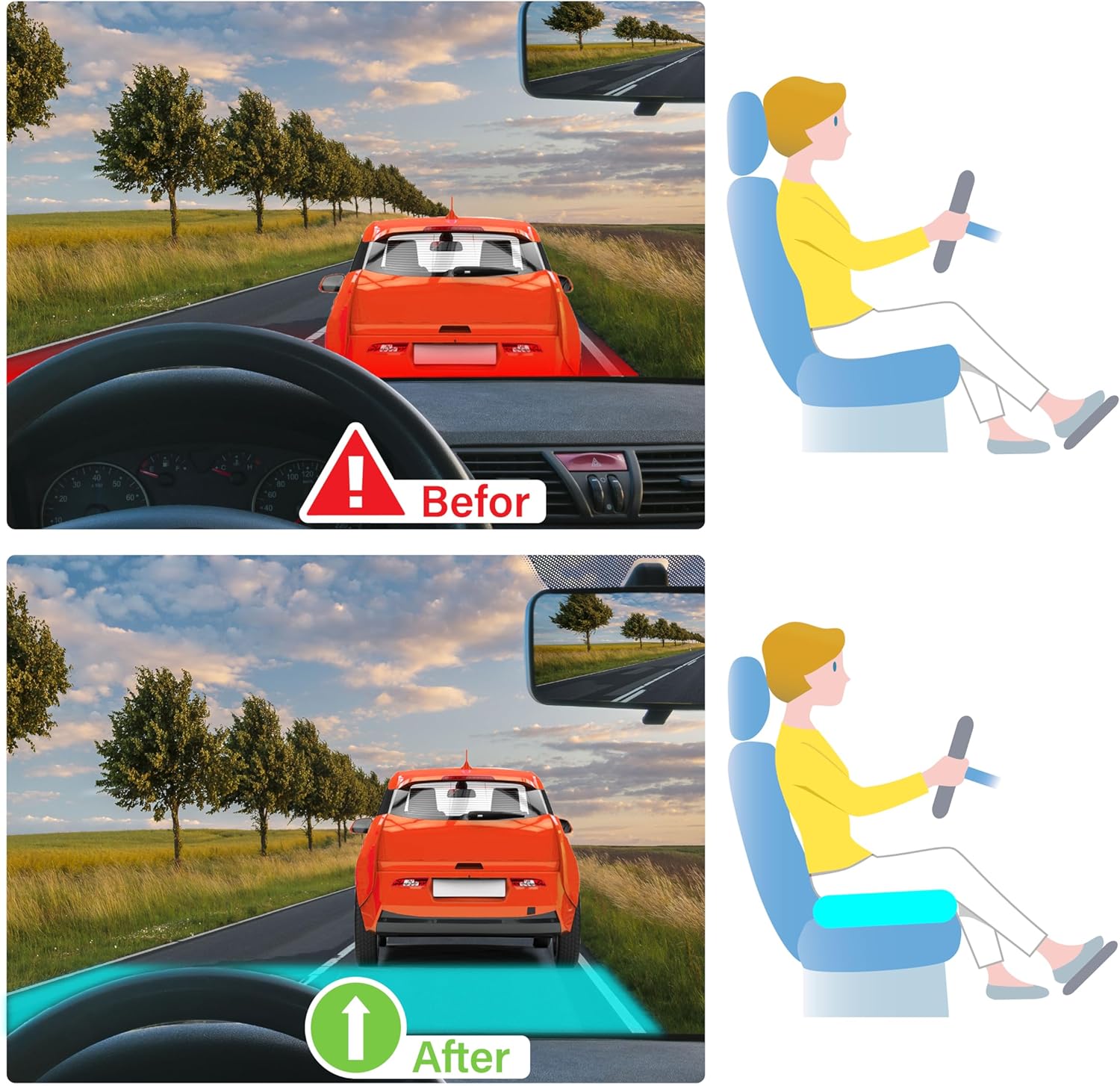 - Upgrade Car Booster Seat for Short Drivers - This car seat cushions for short people adds 4.5 inches of height and support, improving driving visibility, offering comfort and safety while driving