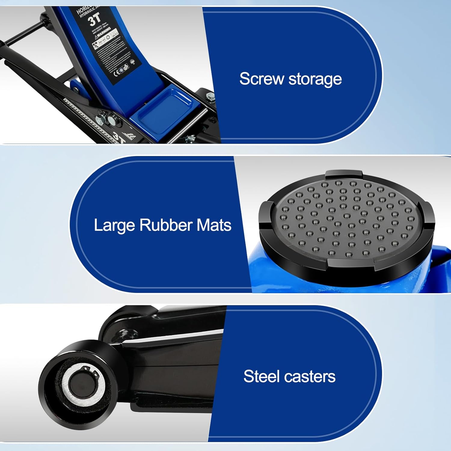 - ăSturdy and Durableă: Heavy-duty steel design with two sturdy fixed wheels as well as two universal wheels for easy movement of the jack.Back to the valve oil design, tighten the rise, unscrew the decline, easy to operate; thickened handle rocker handle, more durable.