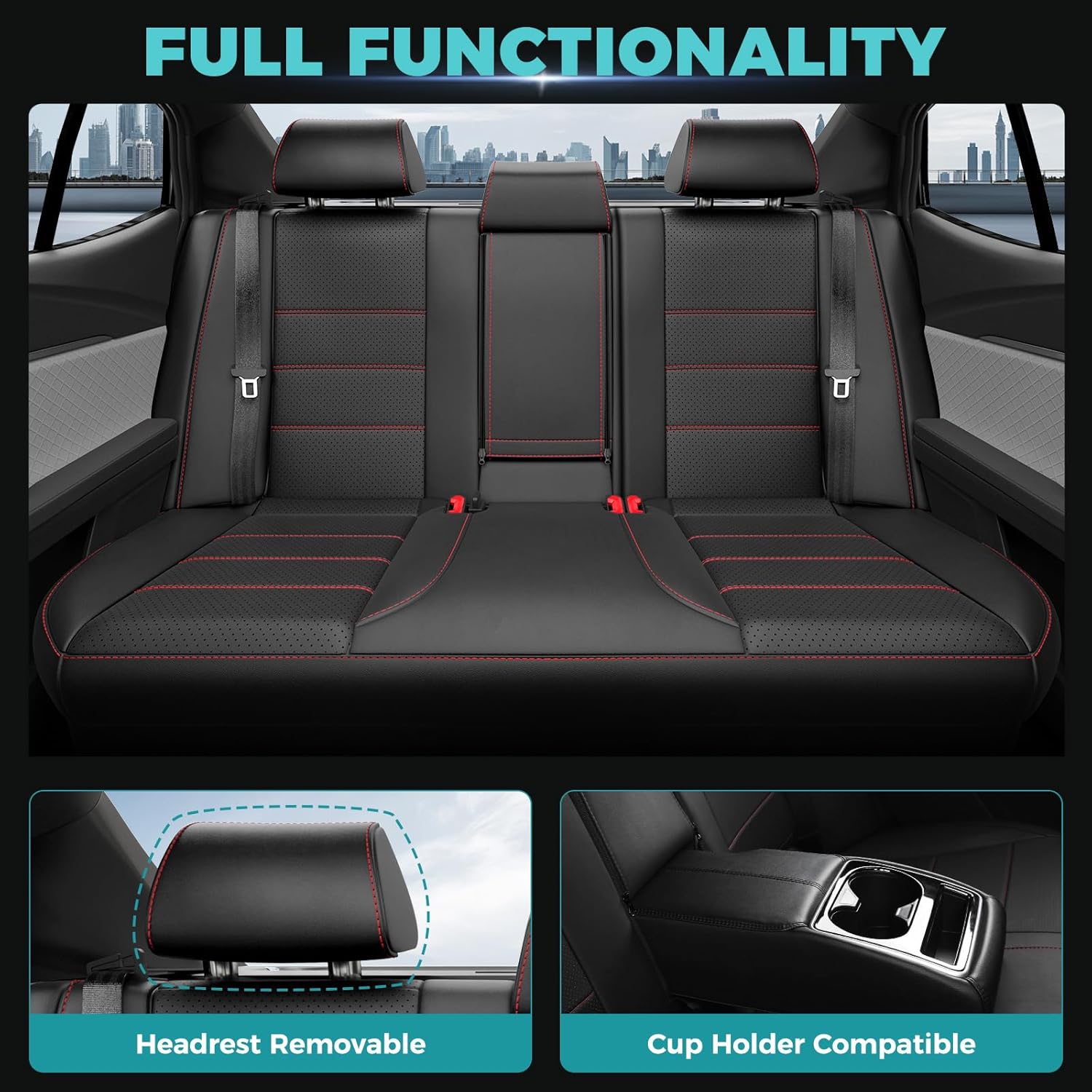for Toyota Camry Seat Covers XSE XLE 2025 - Custom Fit Car Seat Covers Full Set, Leather Seat Covers for Cars, Waterproof Car Seat Cover, Black Red