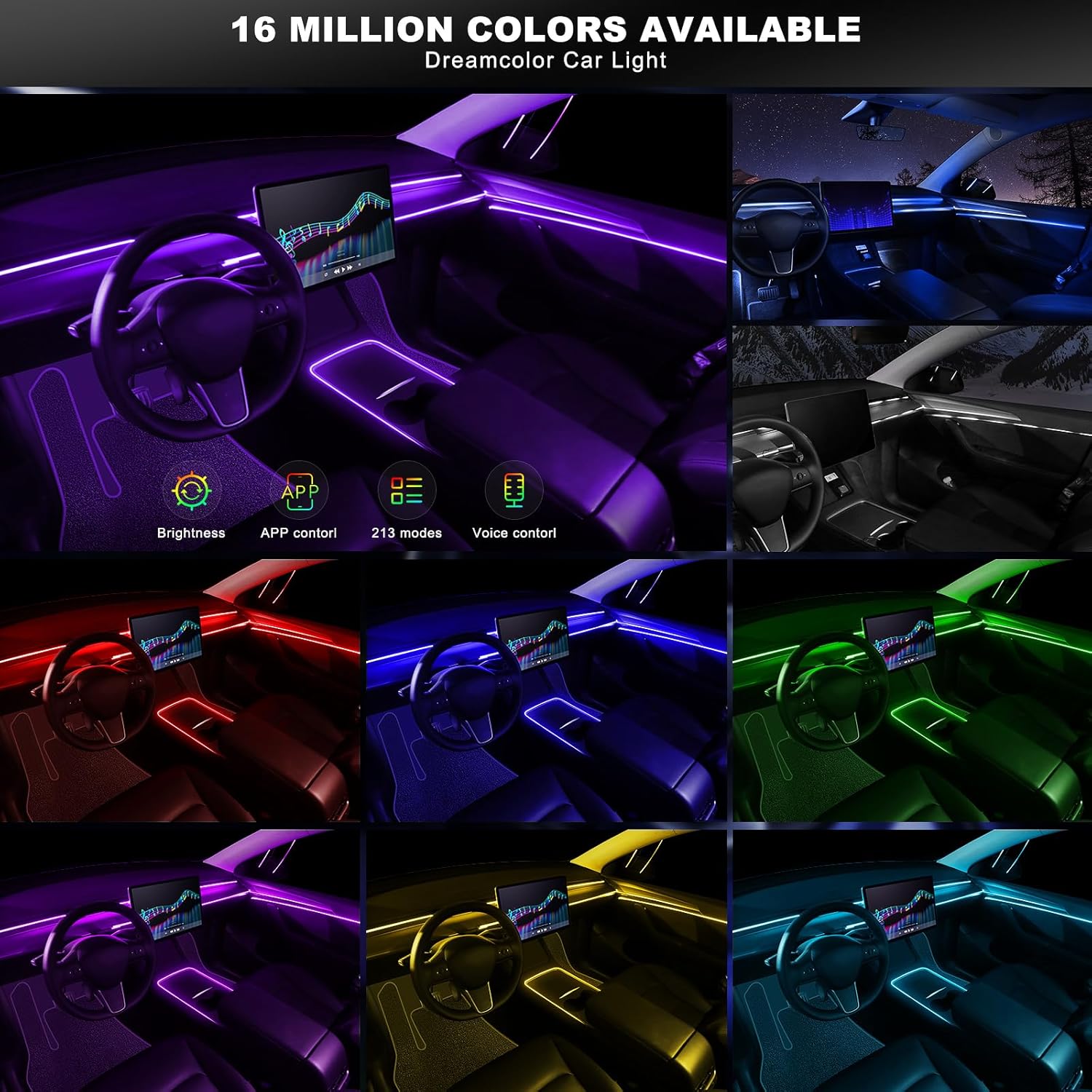Acrylic Interior Car LED Strip Light with Wireless APP, RGB 6 in 1 with 175 inches 612 LEDs Fiber Optic Car Ambient Lighting Kits, Dynamic Music Sync Neon LED Strip Lights for Car