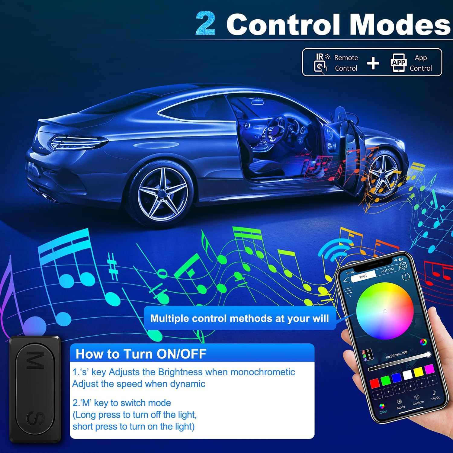 - ăWide Range of UseăUniversal for all cars and trucks. You can cut it according to the length of each strip you need. you can customize your own unique color modes to perfect enhancement for upgrading your car.