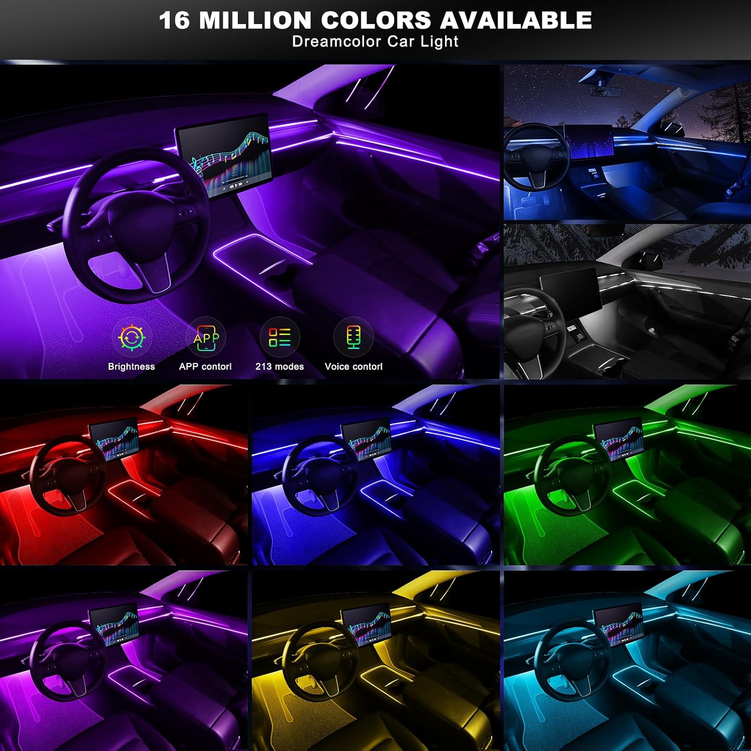Acrylic Interior Car LED Strip Light with Wireless APP, RGB 10 in 1 with 175 inches 612 LEDs Fiber Optic Car Ambient Lighting Kits, Dynamic Music Sync Neon LED Strip Lights for Car