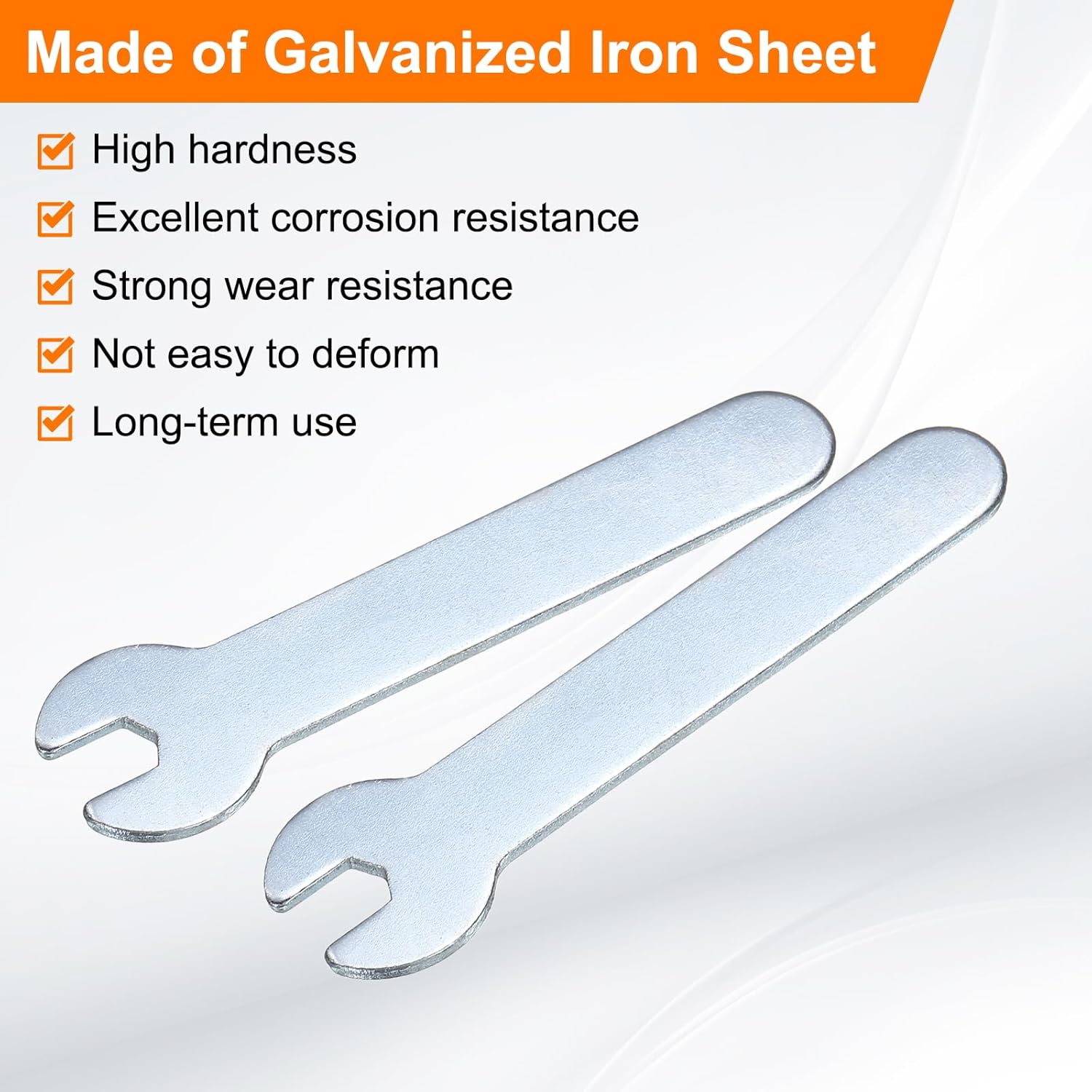 - Long Lasting - Our single open-end wrench is made of an iron plate, which has high hardness and excellent corrosion resistance. The surface galvanizing improves its wear resistance, keeps its surface smooth and reduces wear, is not easy to deform, and can be used for a long time.