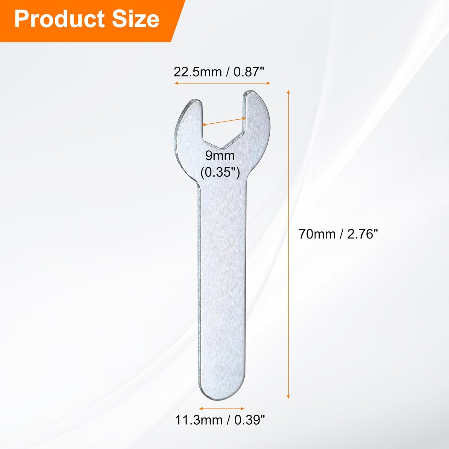 - Size - Open end: 10mm / 0.45"; Open outside width: 22.5mm / 0.87"; Total length: 70mm / 2.76"; Stem thickness: 1.5mm / 0.06"; Stem width: 11.3mm / 0.39"; Color: Silver-grey; Package includes: 10 x Single open-end wrenches. The open wrench set is thin enough to work on tight spots.