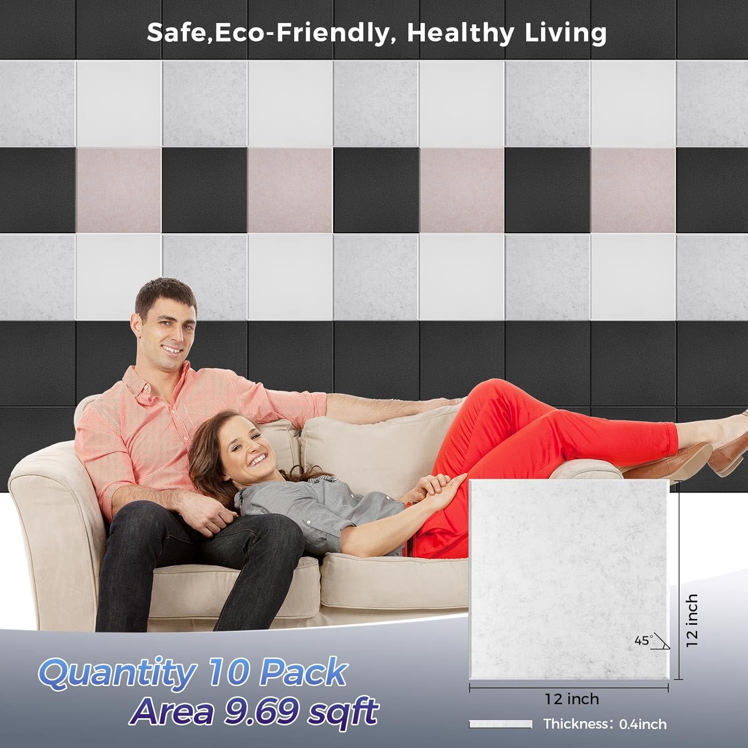 10 pcs 165dtex Microfiber Acoustic Panels ,Self-Adhesive Soundproof Wall Panels, 12 x 12 x 0.4 in Sound Proof Foam Panels for Walls, High Density, Noise Dampening Panels for Home Studio(Gray)