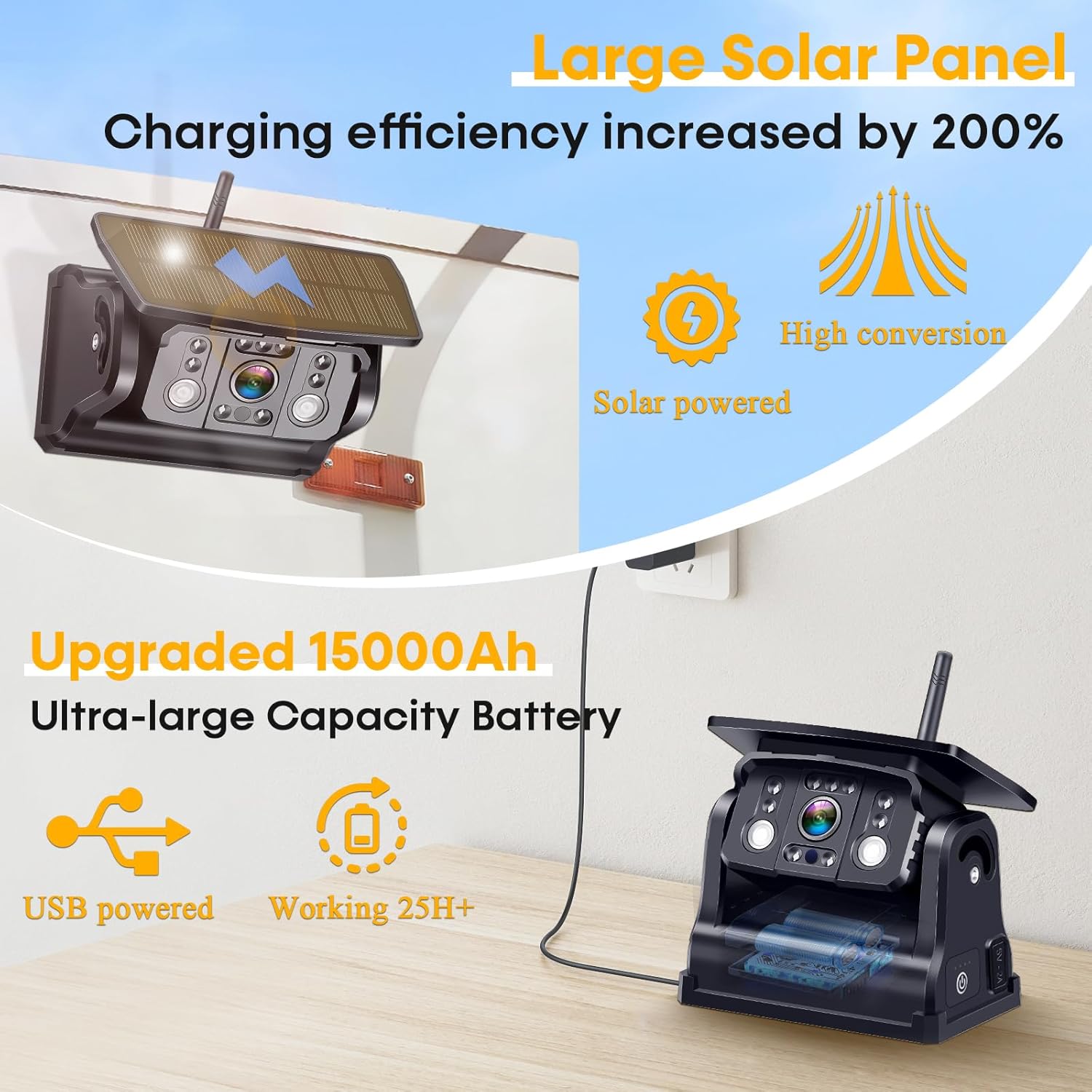 - SOLAR POWERED – LONG-LASTING BATTERY LIFE: Built for long trips, the 15000mAh battery offers up to 25 hours of use on a full charge. The 3W solar panel recharges during daylight, ensuring consistent performance. Stay powered for longer journeys without worrying about charging.