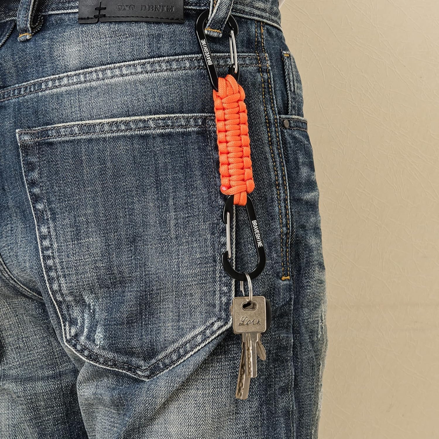 BRAVESHINE Paracord Keychain Carabiner Clip, D Ring Lanyard Hanger Stroller Hook for Water Bottle, Key, Backpacks, Men, Women