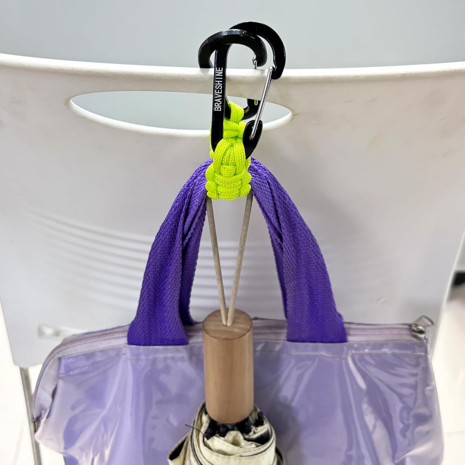 BRAVESHINE Paracord Keychain Carabiner Clip, D Ring Lanyard Hanger Stroller Hook for Water Bottle, Key, Backpacks, Men, Women