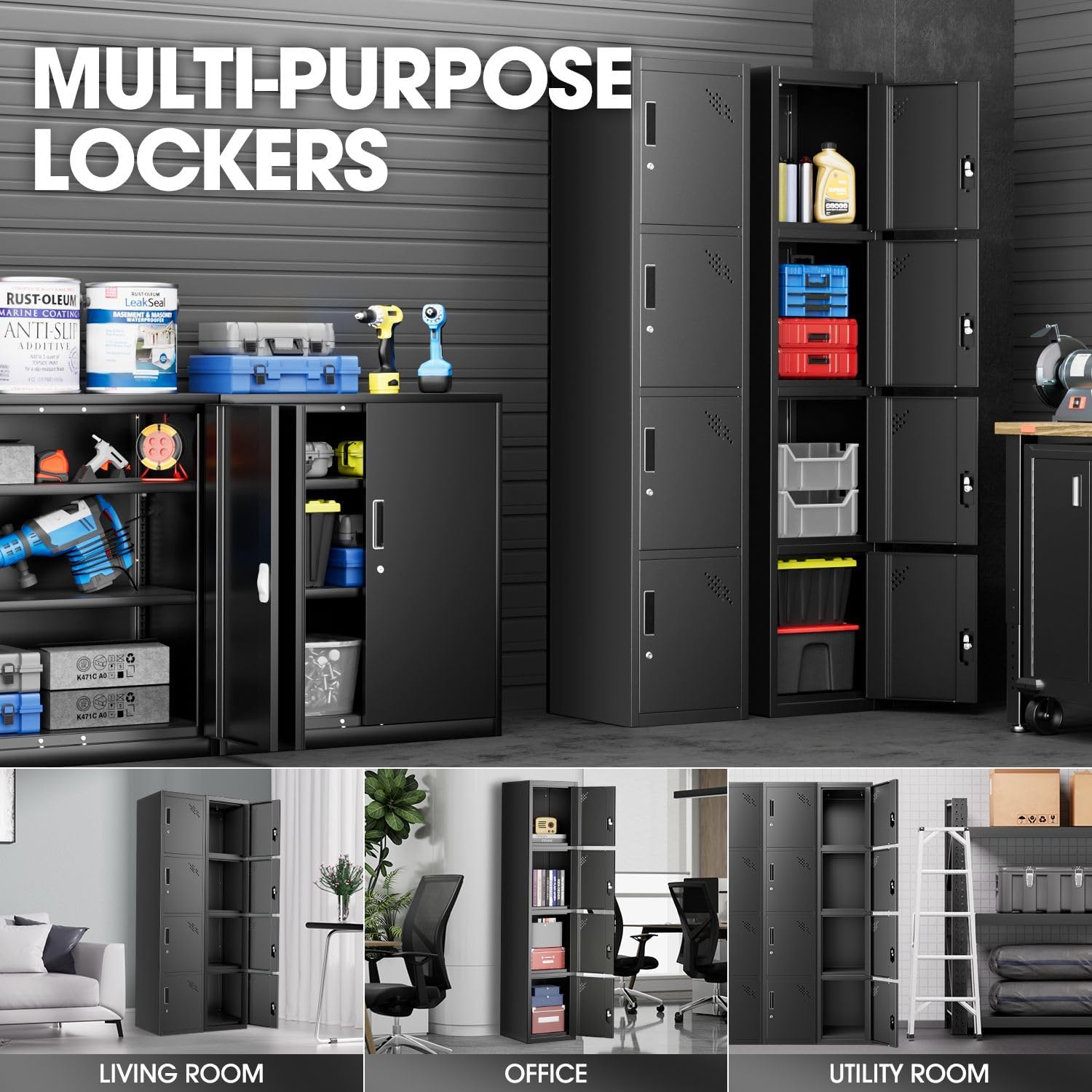 - PRACTICAL SPACE DESIGN - The storage cabinet metal includes 4 separated space provide adaptability and convenience; The cabinet door adopts a breathable design to reduce the possibility of odor caused by long-term storage