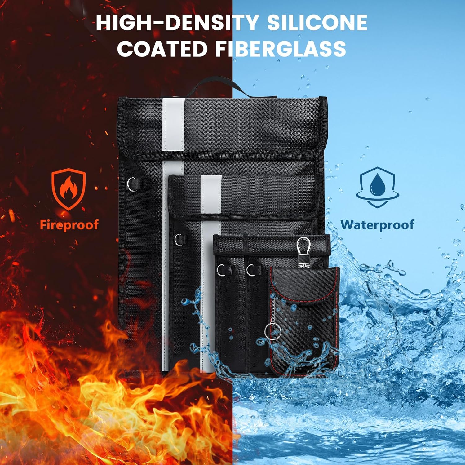 - Waterproof & Fireproof RFID Bags📶The exterior of the faraday cages is made of high-density silicone-coated fiberglass,which not only withstands temperatures up to 2000°F,but is also highly waterproof!The lining of the Faraday bag is also carefully chosen for its special shielding material,which is lined with a fabric that will protect devices from being scratched.