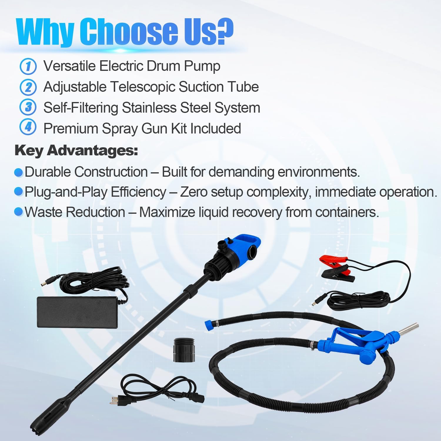 - [Versatile Fluid Transfer]: Ideal for a wide range of liquids, including diesel, DEF (AdBlue), non-potable water, kerosene, antifreeze, windshield washer fluid, mild detergents, agricultural chemicals, and light oils