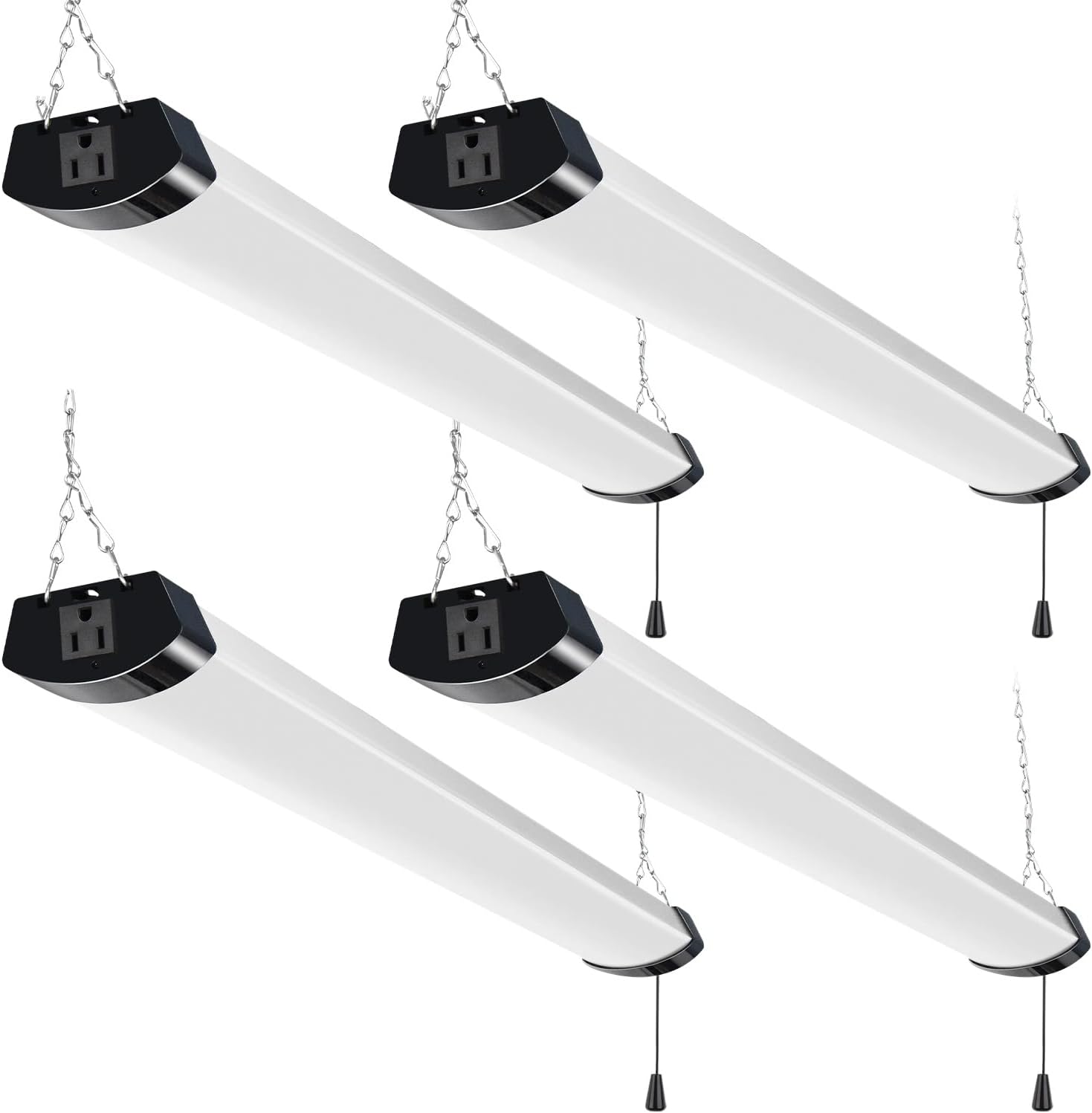 hykolity 120W LED Shop Light Linkable,13000lm(400w Equivalent),5000K 4FT Black Utility Shop Lights for Garages,Workshops,Basements,Hanging or Flush Mount with Power Cord and Pull Chain, ETL,4 Pack
