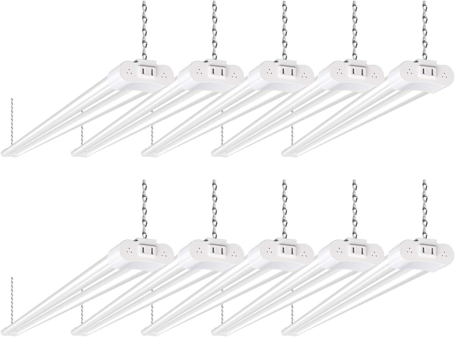 hykolity 10 Pack 4FT Linkable LED Shop Light for Garage, 6500lm, 4FT 60W Utility Light Fixture, 5000K Daylight LED Workbench Bay Lighting with Plug, Hanging or Surface Mount, White - ETL