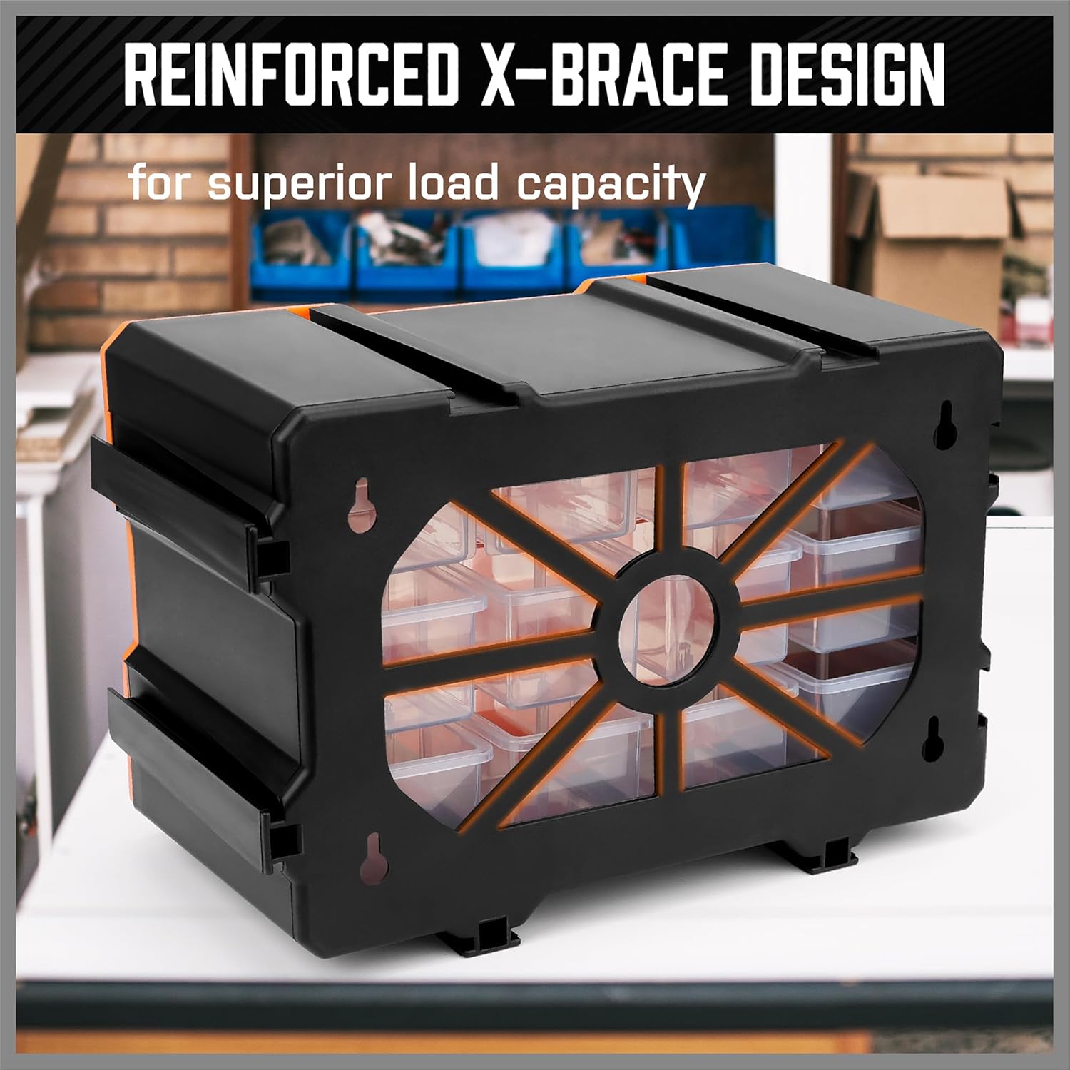 - WALL MOUNTABLE & STACKABLE FOR SPACE OPTIMIZATION – Free up desk or workbench space by mounting it on the wall, or stack multiple units to maximize vertical storage in garages, workshops, or home offices
