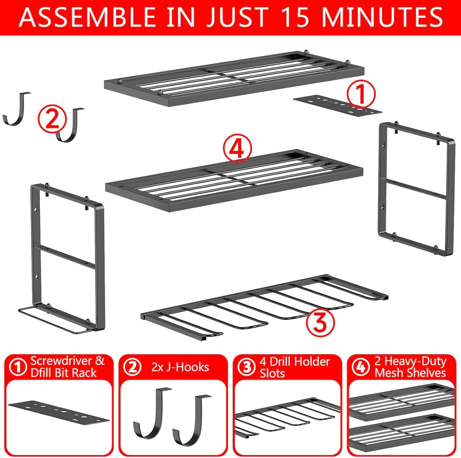 - 15 Min Easy Installation: Experience a swift installation with our user-friendly manuals and installation accessories ensure a hassle-free setup. Assembling the tool rack for your garage wall is a breeze; connect the pieces with the provided screws and hang them