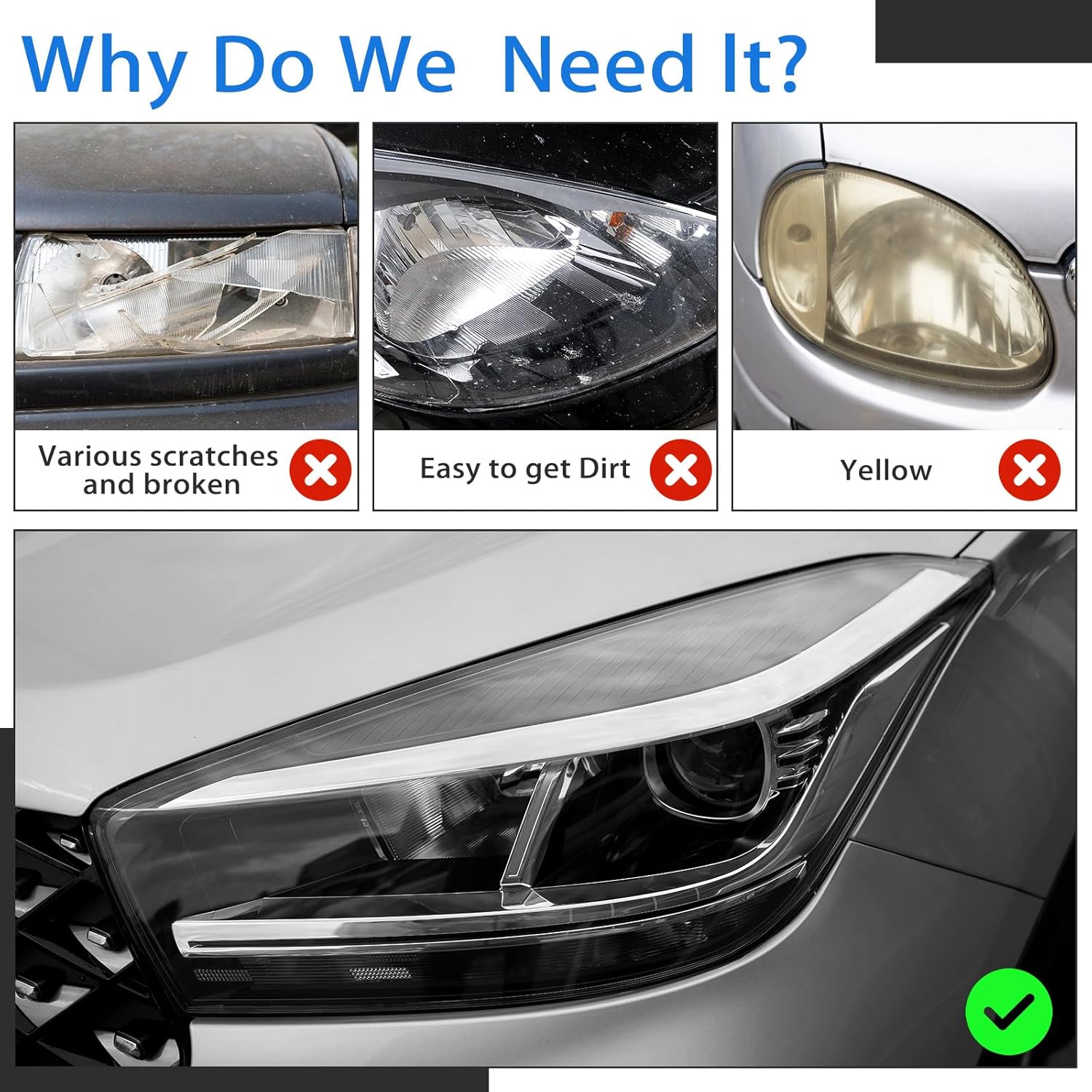 - Sun Protection Scratch Resistance: with its waterproof and sunproof properties, our headlight tint film can use in most weather conditions; Its strong light transmittance ensures that your lights remain as bright as ever, ensuring safety while on the road